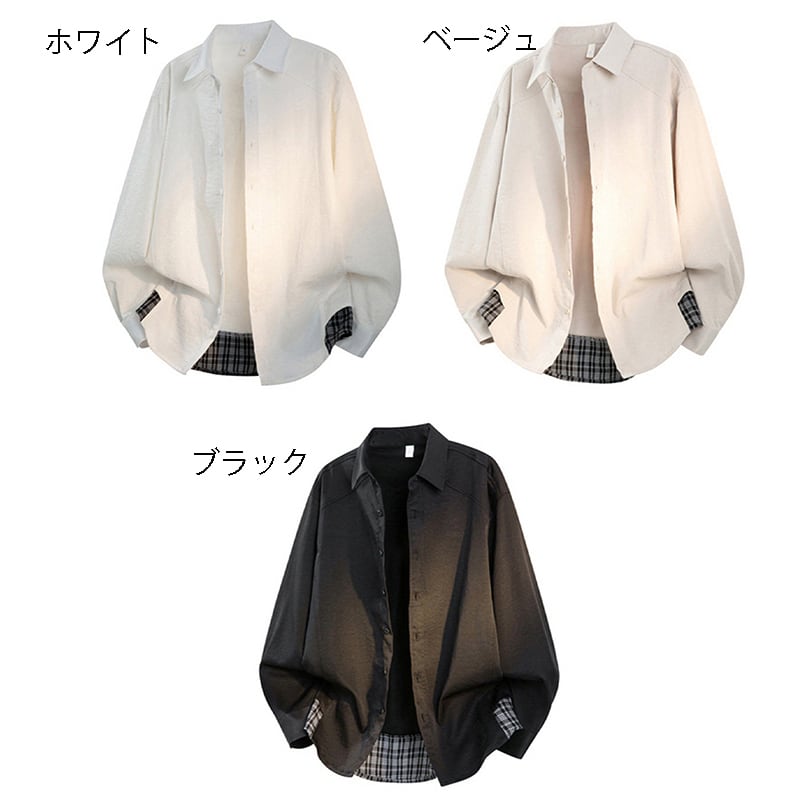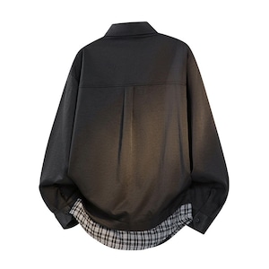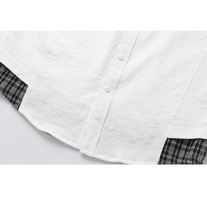 ♥パッチワークの美学!【WSシリーズ】★シャツ★ 3color ユニセックス トップス チェック柄 切り替え 黒 白