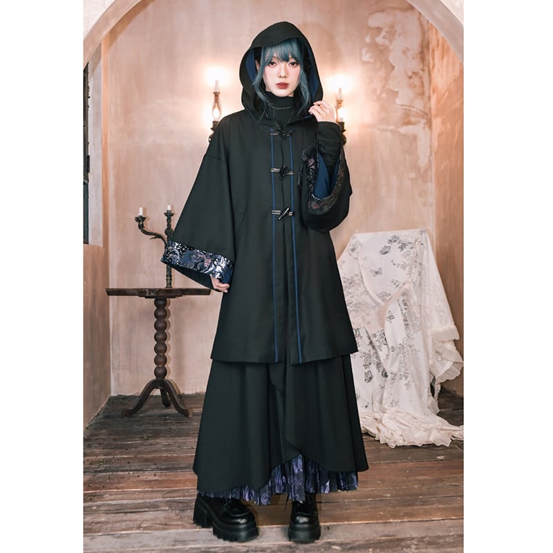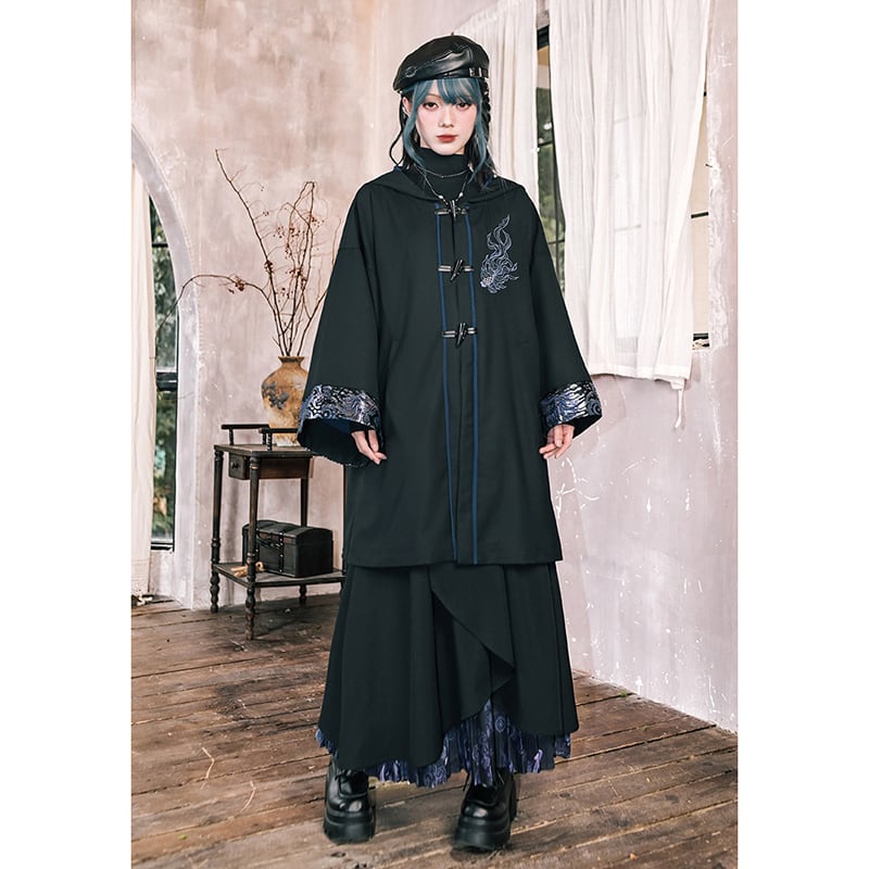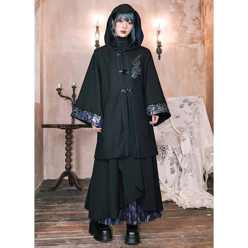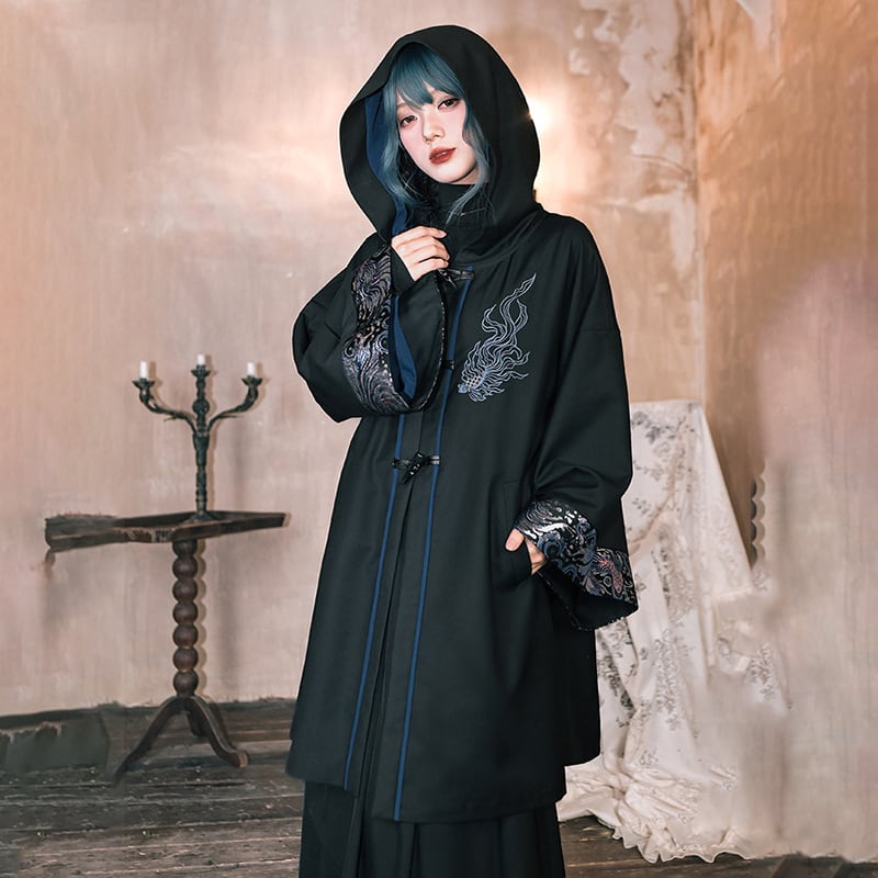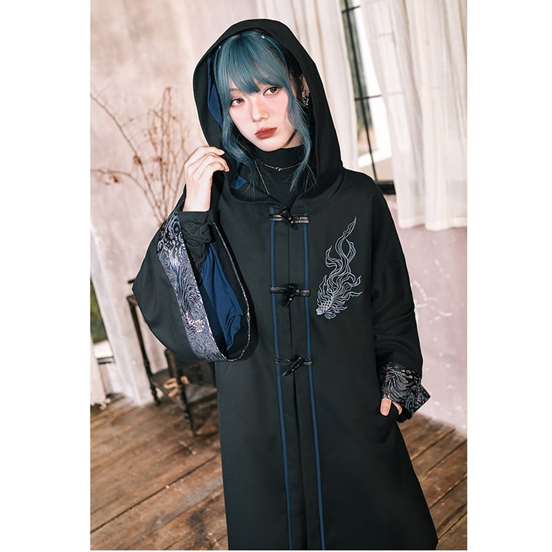♥フードに宿る、新しい雅!【古怪舍---浮光鰭夢シリーズ】★チャイナ風コート★ 刺繍 マント マントコート アウター coat