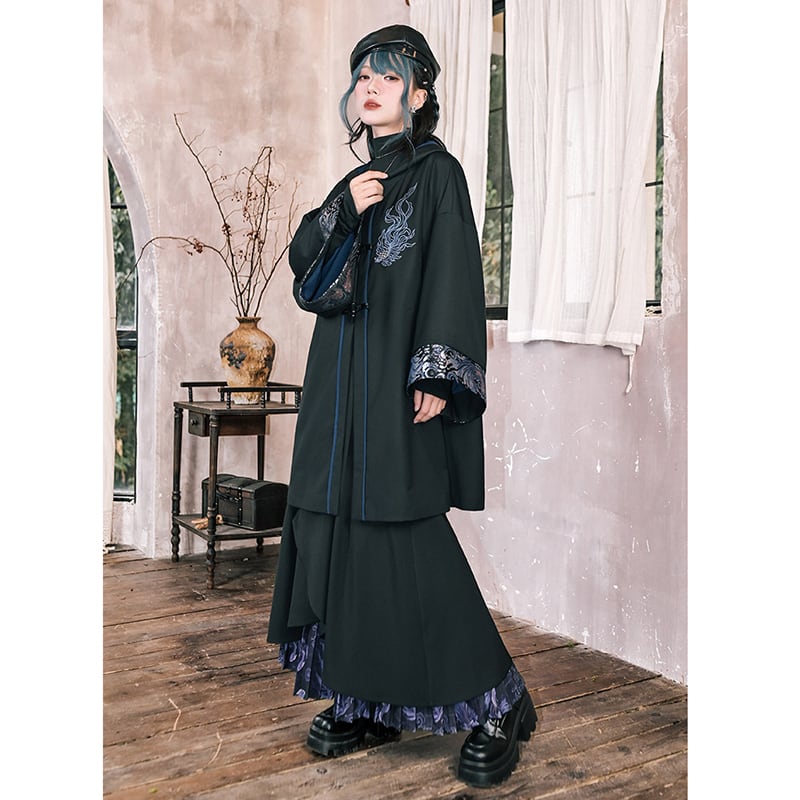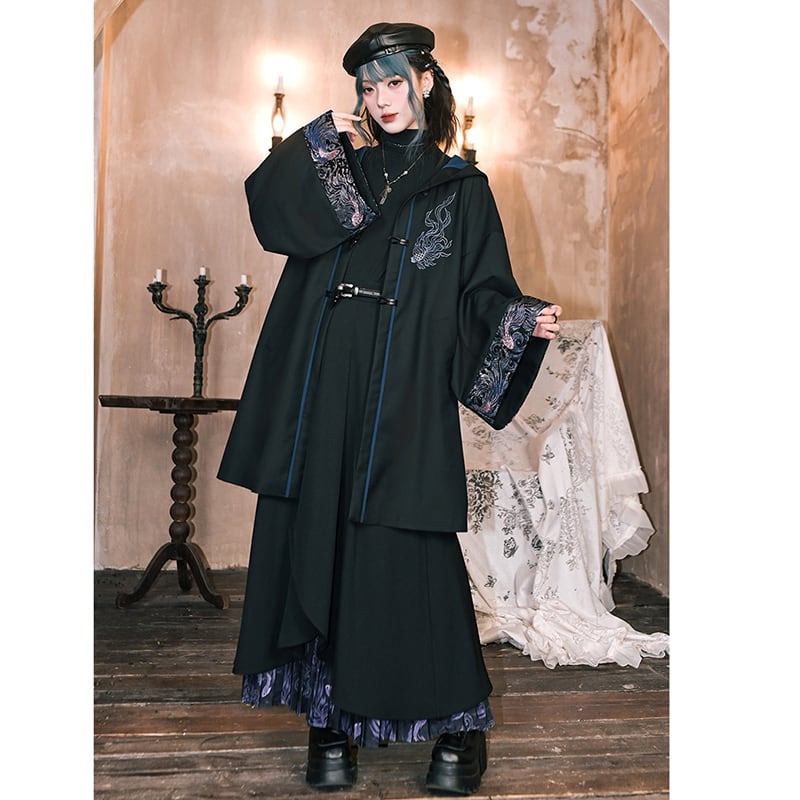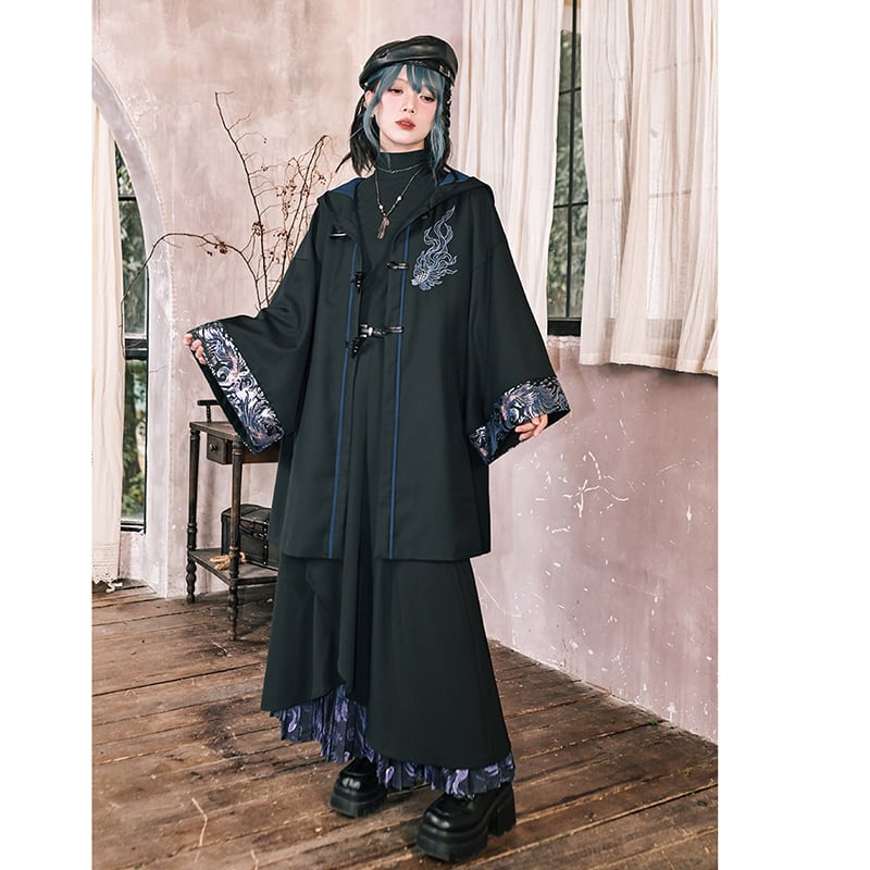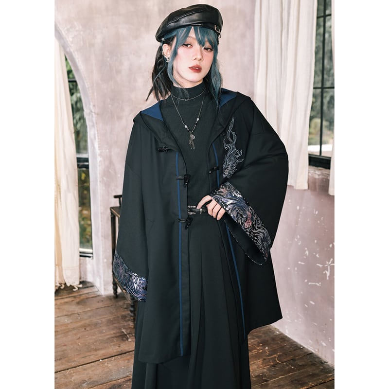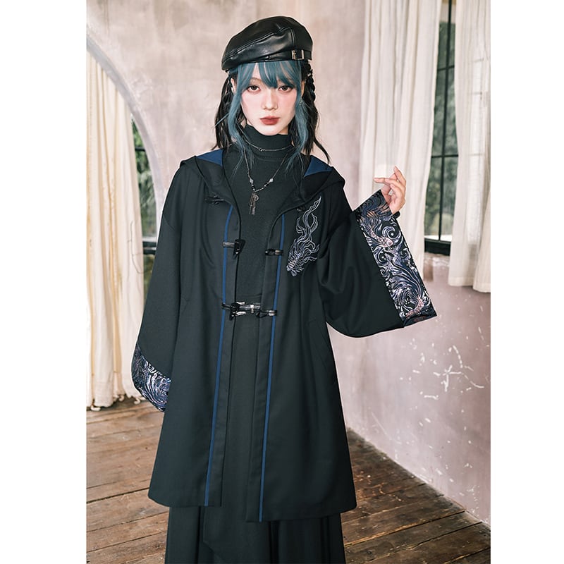 ♥フードに宿る、新しい雅!【古怪舍---浮光鰭夢シリーズ】★チャイナ風コート★ 刺繍 マント マントコート アウター coat