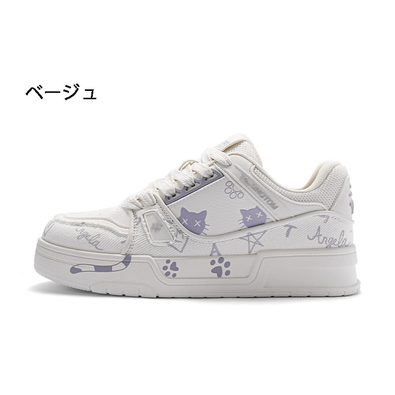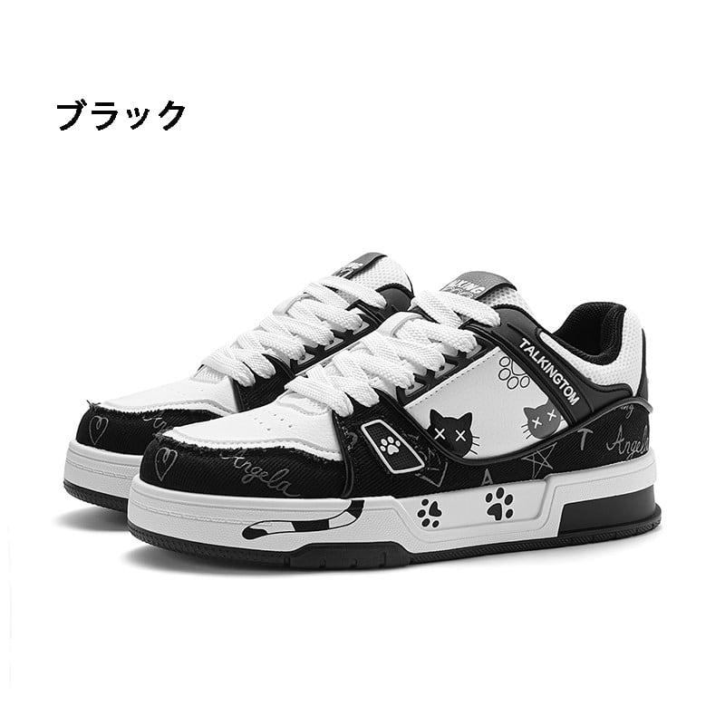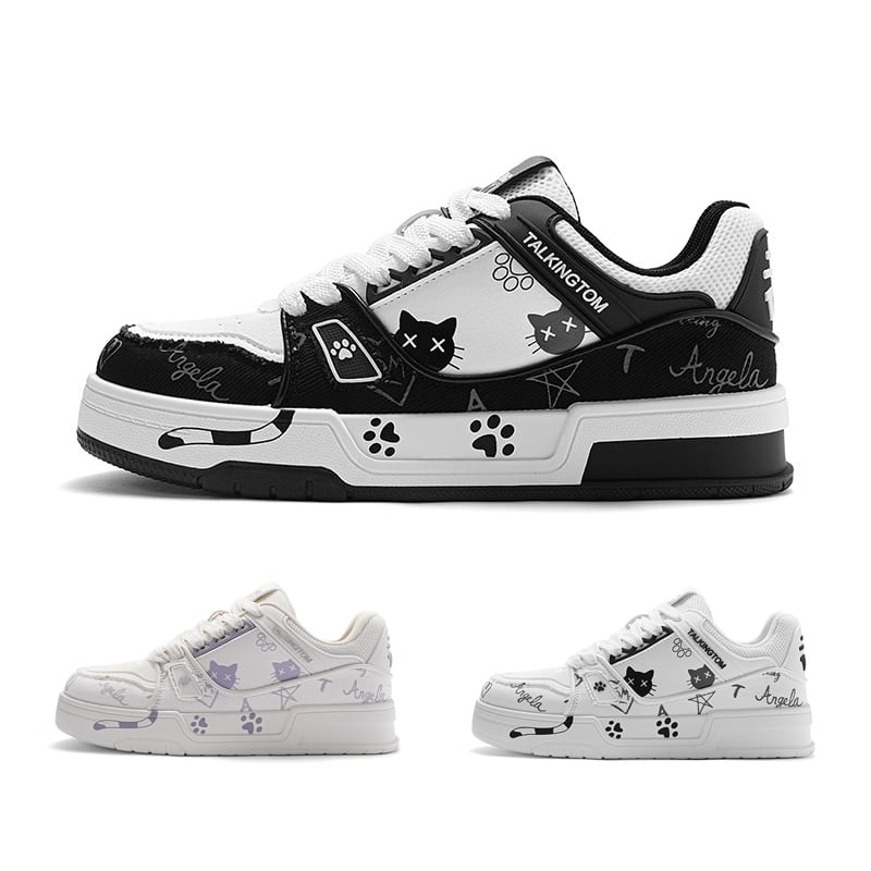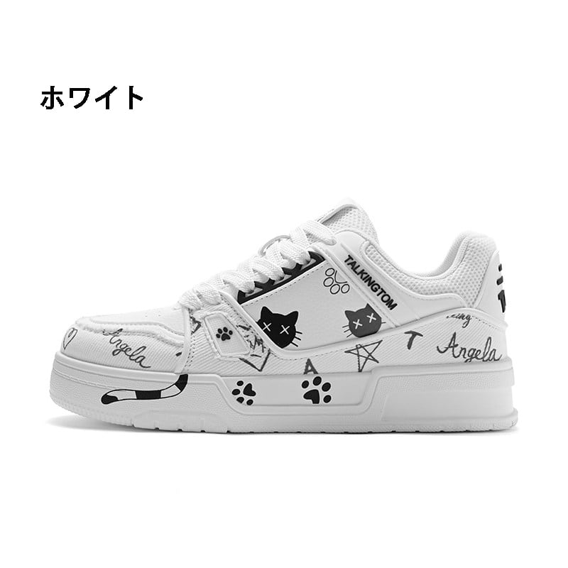 ☼可愛い猫柄スニーカー!【HUISHUOHUAシリーズ】★スニーカー★ 3color ユニセックス お靴 シューズ スポーツ風 サイズ36-44 カジュアル 黒 白