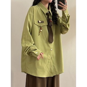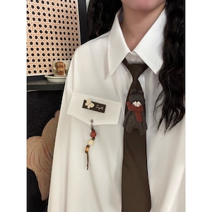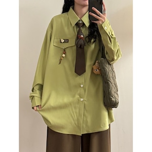 ♥タイとビーズで、春を纏う!【UATONLINEシリーズ】★シャツ★ 2color ネクタイ付き ユニセックス トップス 長袖シャツ