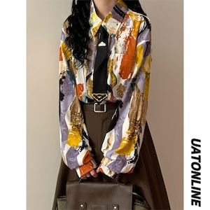 ♥春、ゆったりアートと!【UATONLINEシリーズ】★シャツ★ 2color ネクタイ付き ユニセックス トップス 長袖シャツ
