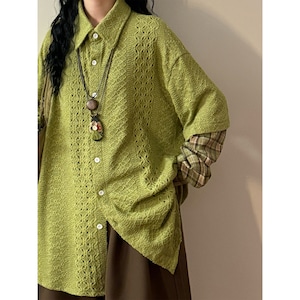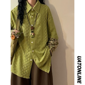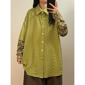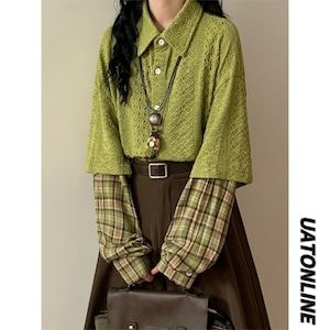 ♥春の空気を纏う、レトロモダンな一枚!【UATONLINEシリーズ】★シャツ★ユニセックス トップス 長袖シャツ フェイクレイヤード