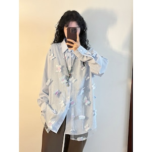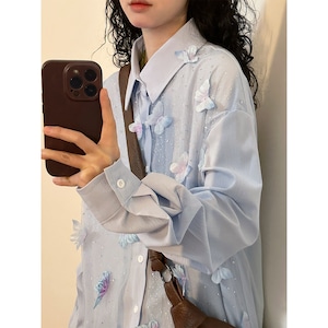 ♥立体の蝶が羽ばたく、春のポロシャツ!【UATONLINEシリーズ】★シャツ★ユニセックス トップス 長袖シャツ 蝶々