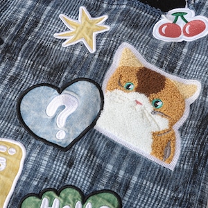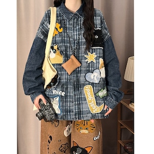 ♥猫柄デニムシャツ!【UATONLINEシリーズ】★シャツ★ ユニセックス トップス 長袖シャツ 猫柄 猫 ネコ