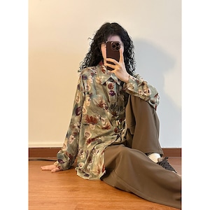 ♥春のレトロモード!【UATONLINEシリーズ】★シャツ★ ユニセックス ネクタイ付きシャツ トップス 長袖シャツ 花柄シャツ