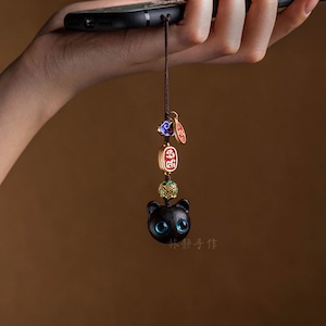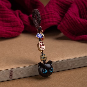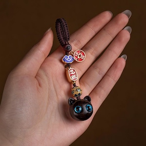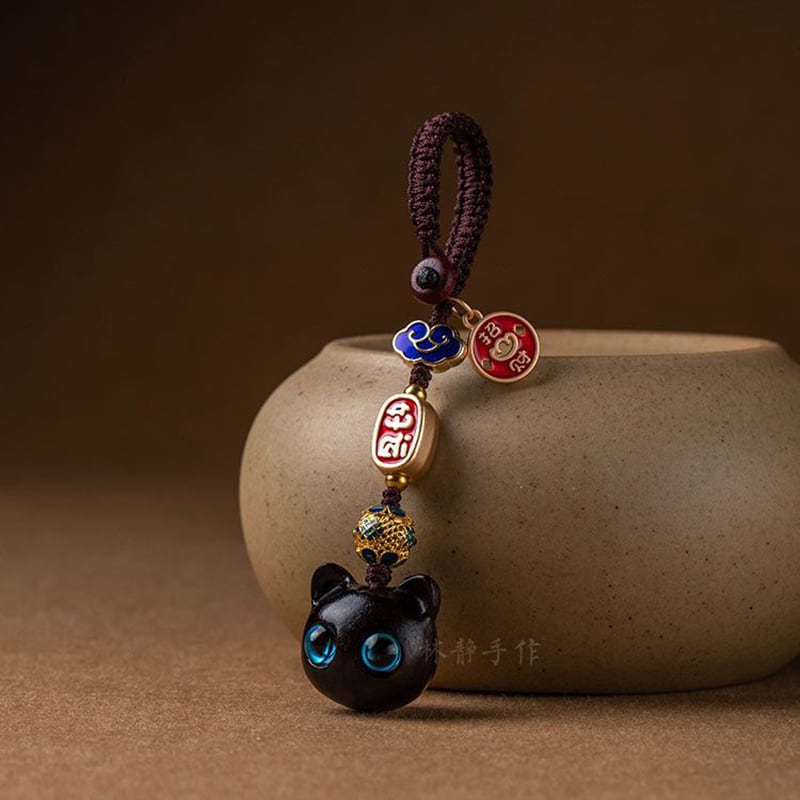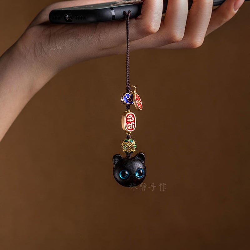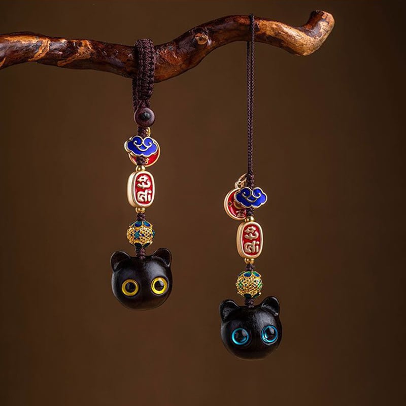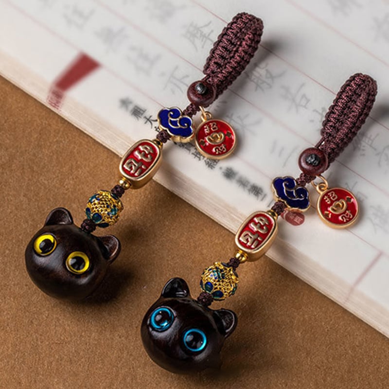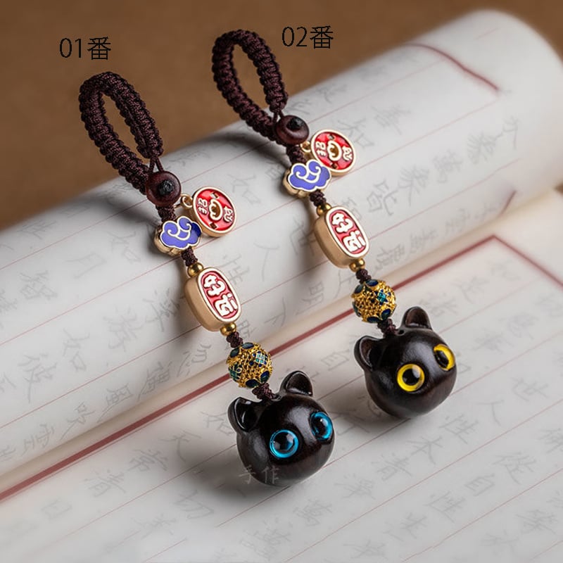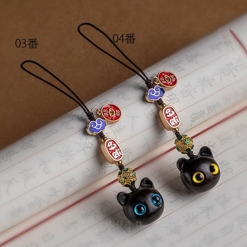 ♥大きく見開いた、幸せの瞳!【QIONGRUIシリーズ】★飾り物★ 檀木 2個 アクセサリー 小さい 可愛い 猫