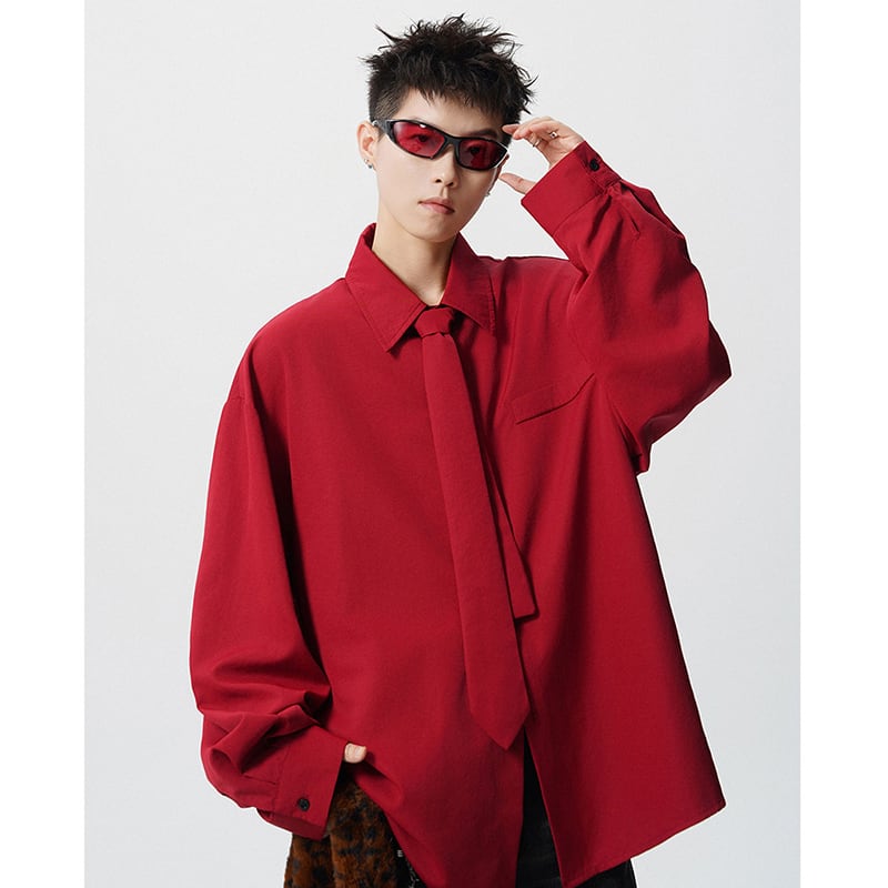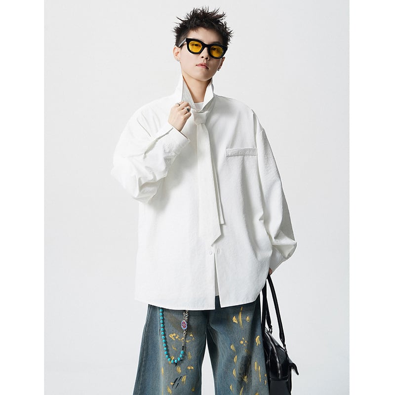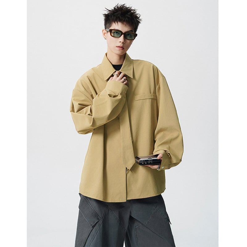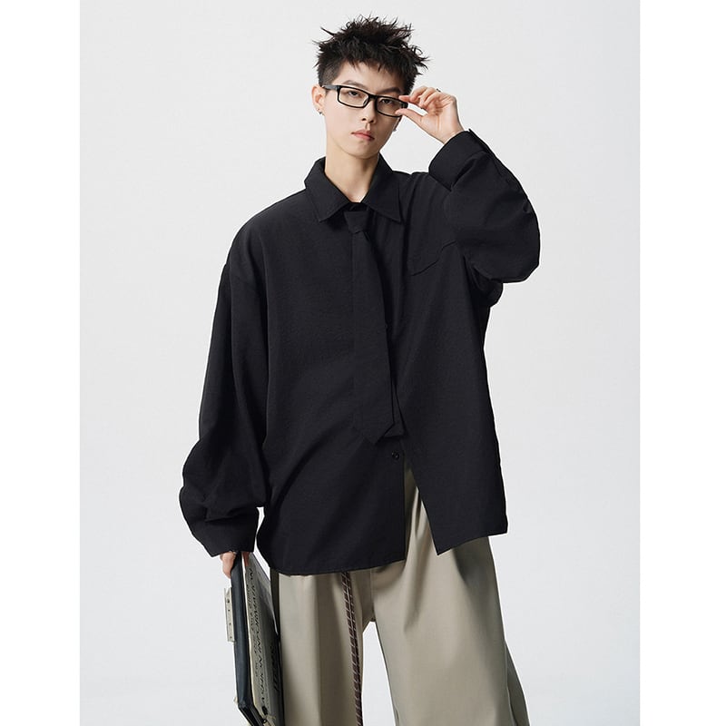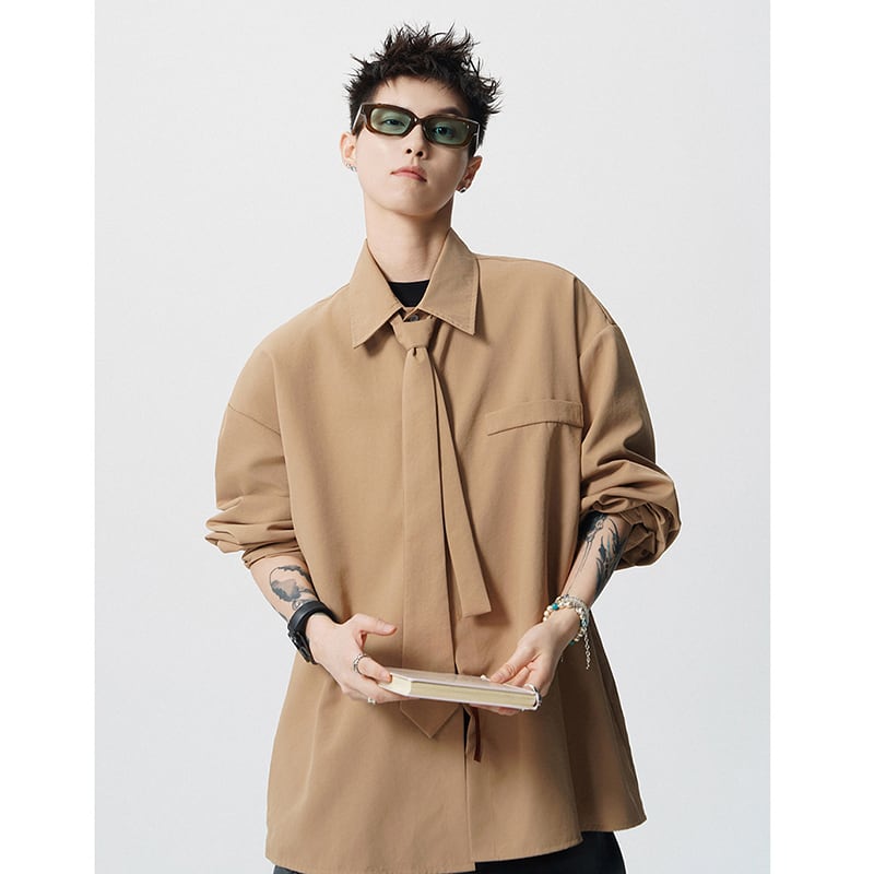 ♥デザイン性抜群の春先取りスタイル!【CEXUシリーズ】★シャツ★ 4color ネクタイ付き トップス 男女兼用 メンズ シンプル 無地