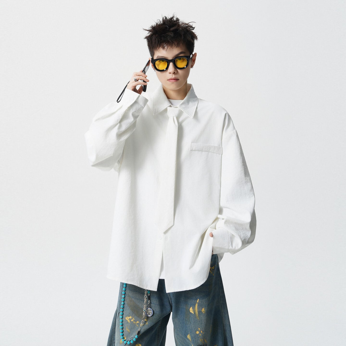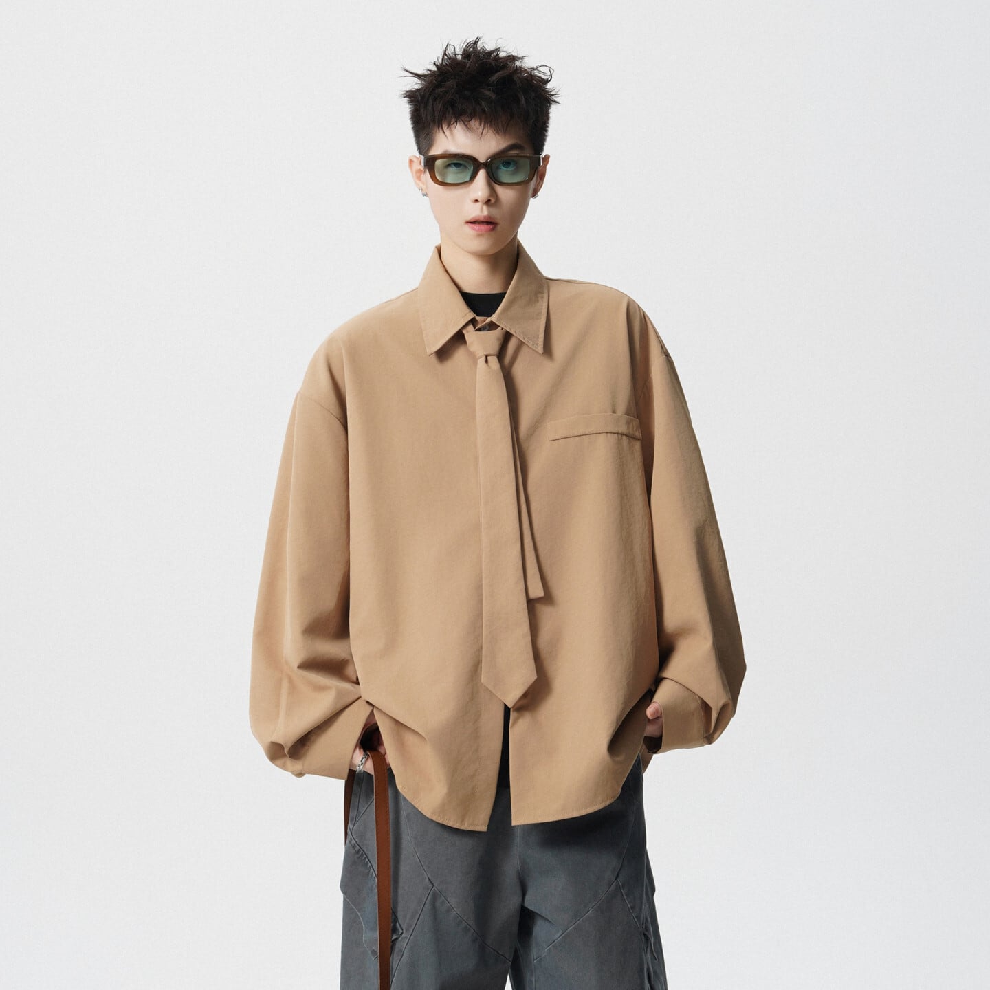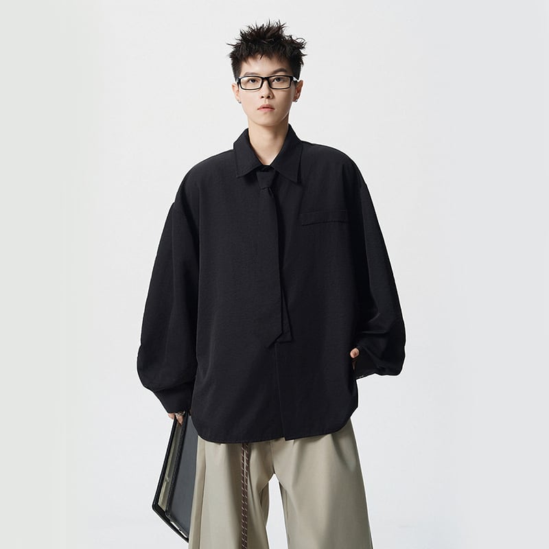 ♥デザイン性抜群の春先取りスタイル!【CEXUシリーズ】★シャツ★ 4color ネクタイ付き トップス 男女兼用 メンズ シンプル 無地