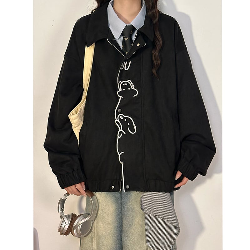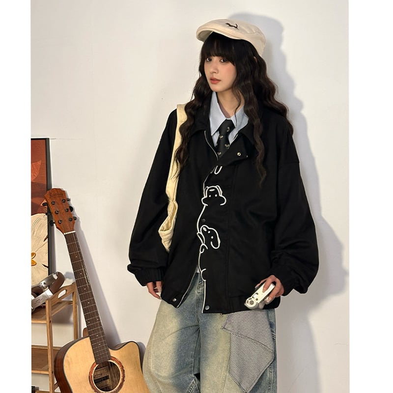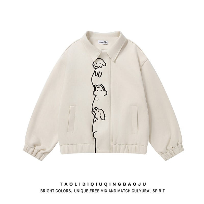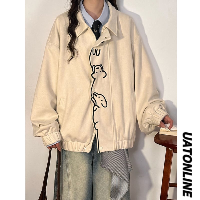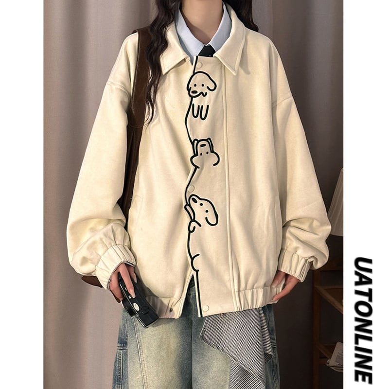 ♥可愛い犬スエードジャケット!【UATONLINEシリーズ】★ジャケット★ ユニセックス アウター チェック柄 カジュアル レトロ色