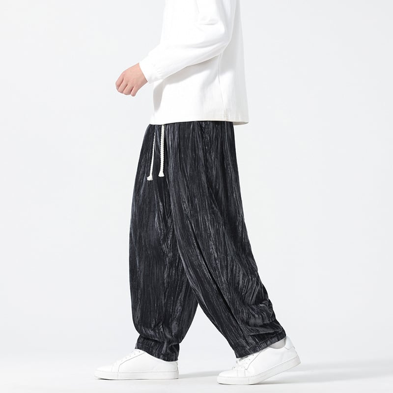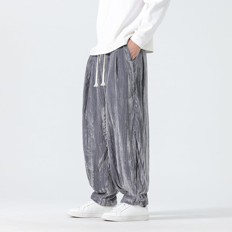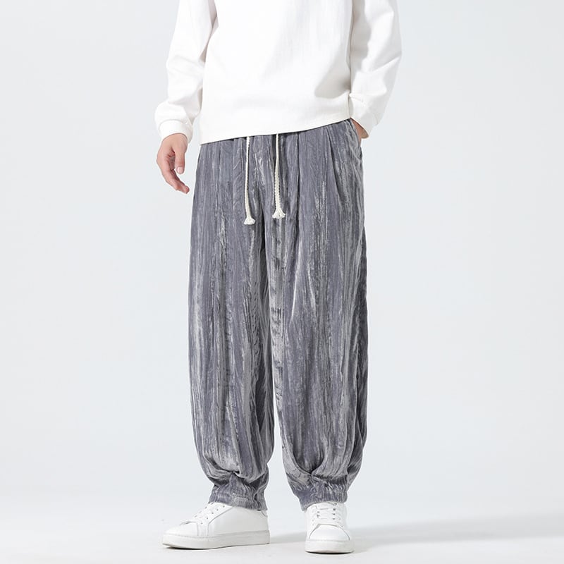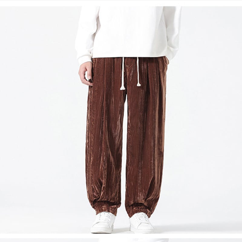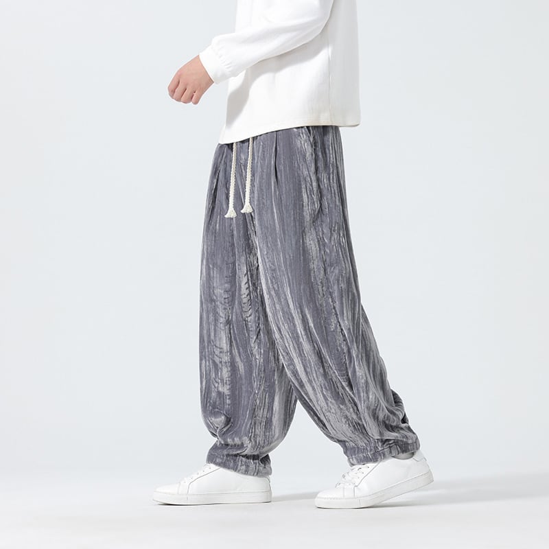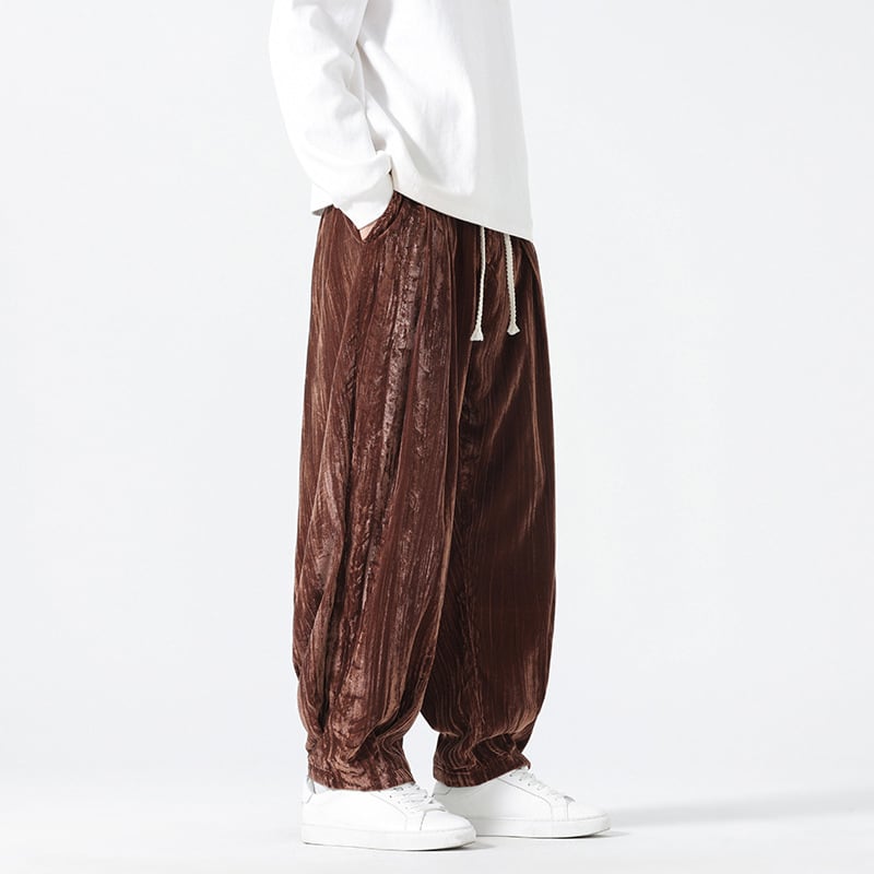 ඩベルベット 3色選択ズボン!【HKシリーズ】★チャイナ風ズボン★ ユニセックス 3color ベルベット カジュアルパンツ ボトムス ウエストゴム 大きいサイズ
