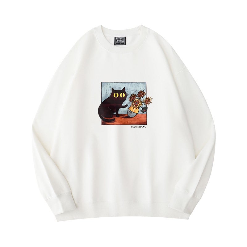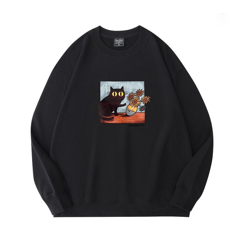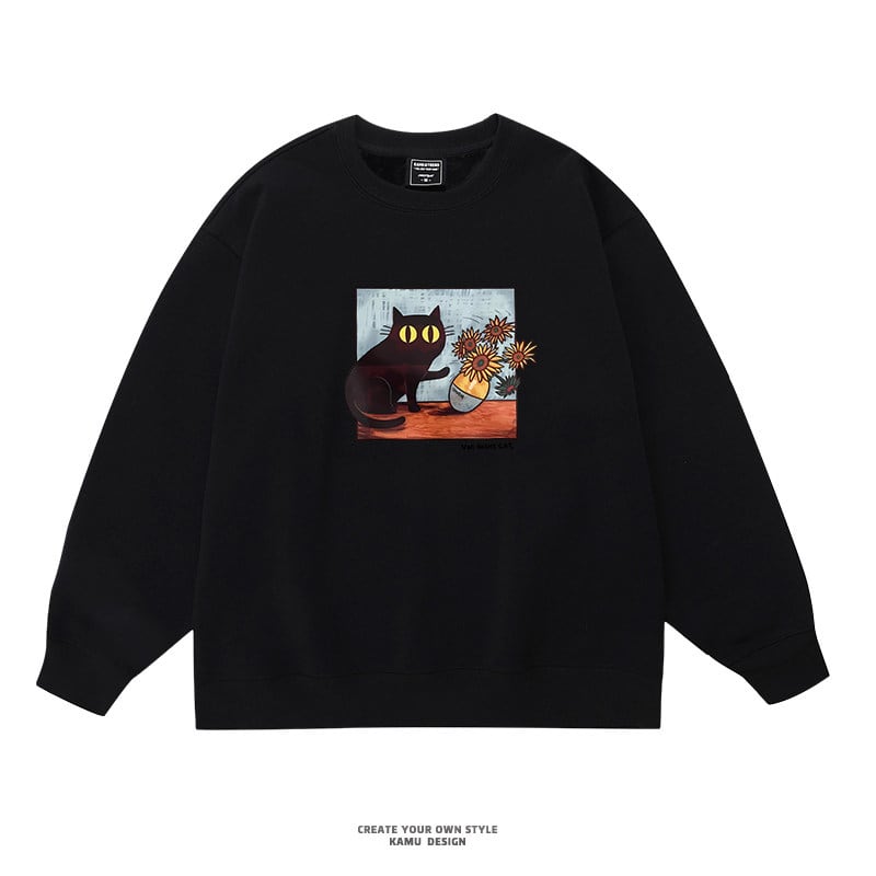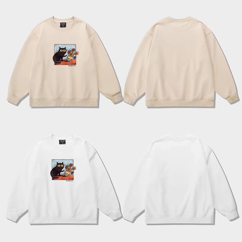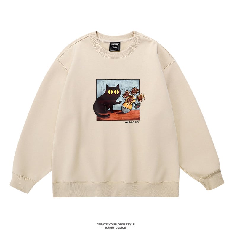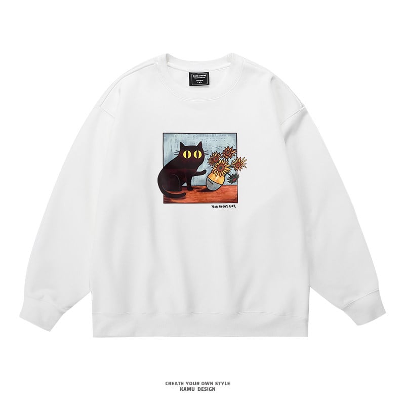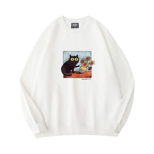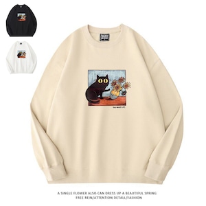 ♥君のための猫アートだ!【KAMUシリーズ】★トップス★ 3color スウェット ユニセックス ラウンドネック コットン 油絵風 猫