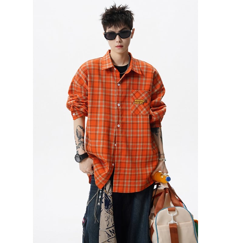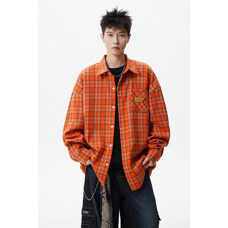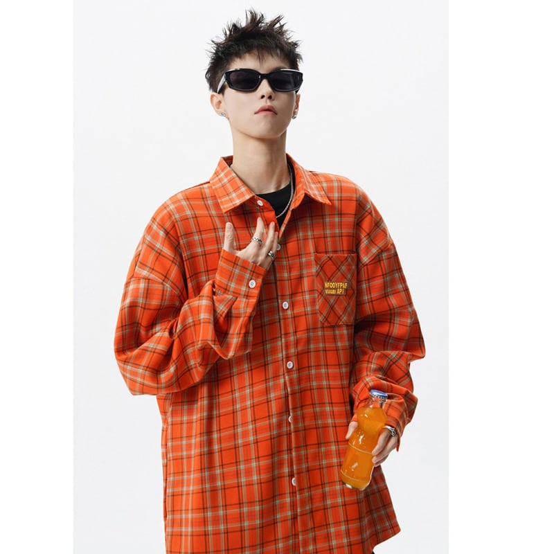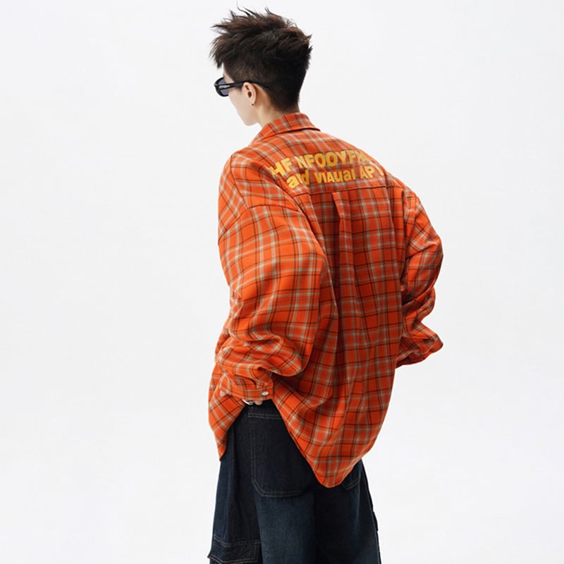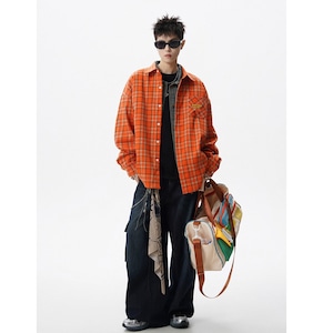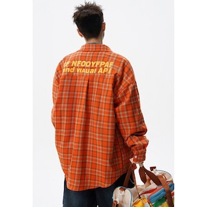 ♥視線をジャックする、オレンジの魔法!【Vesibo旗シリーズ】★シャツ★ トップス ユニセックス メンズ チェック柄 おしゃれ アルファベット
