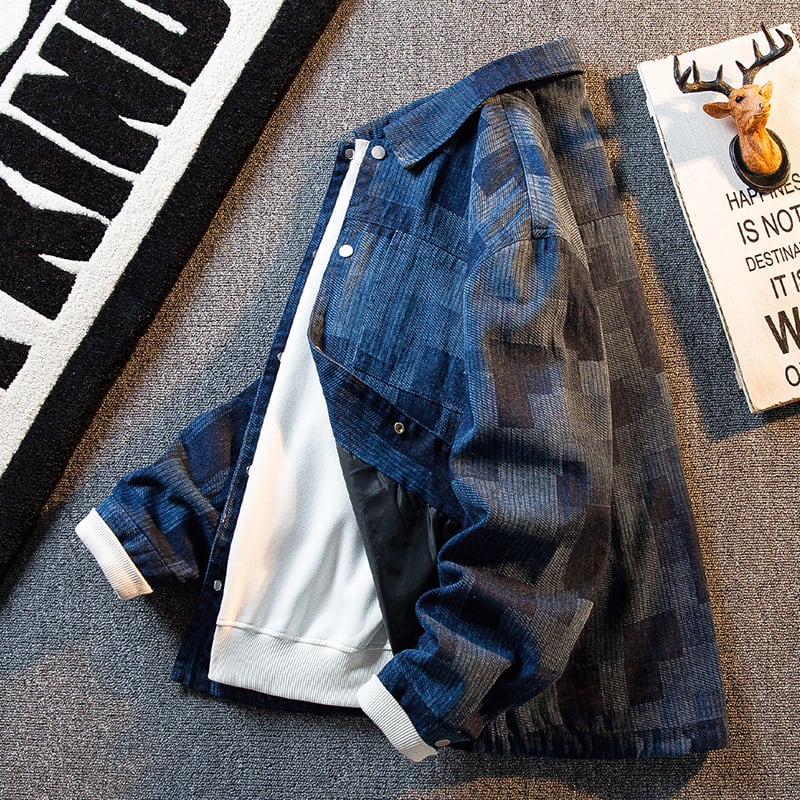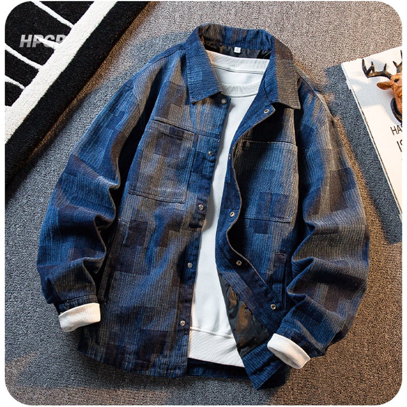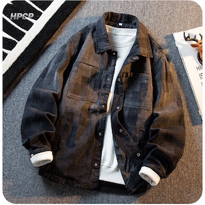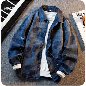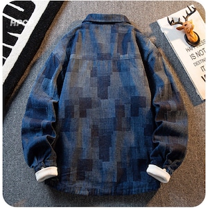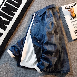 ❦ヴィンテージウォッシュデニム!【HPCPシリーズ】★ジャケット★ 2color アウター デニム ユニセックス チェック柄 デニムジャケット 青 黒