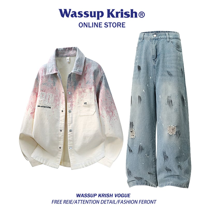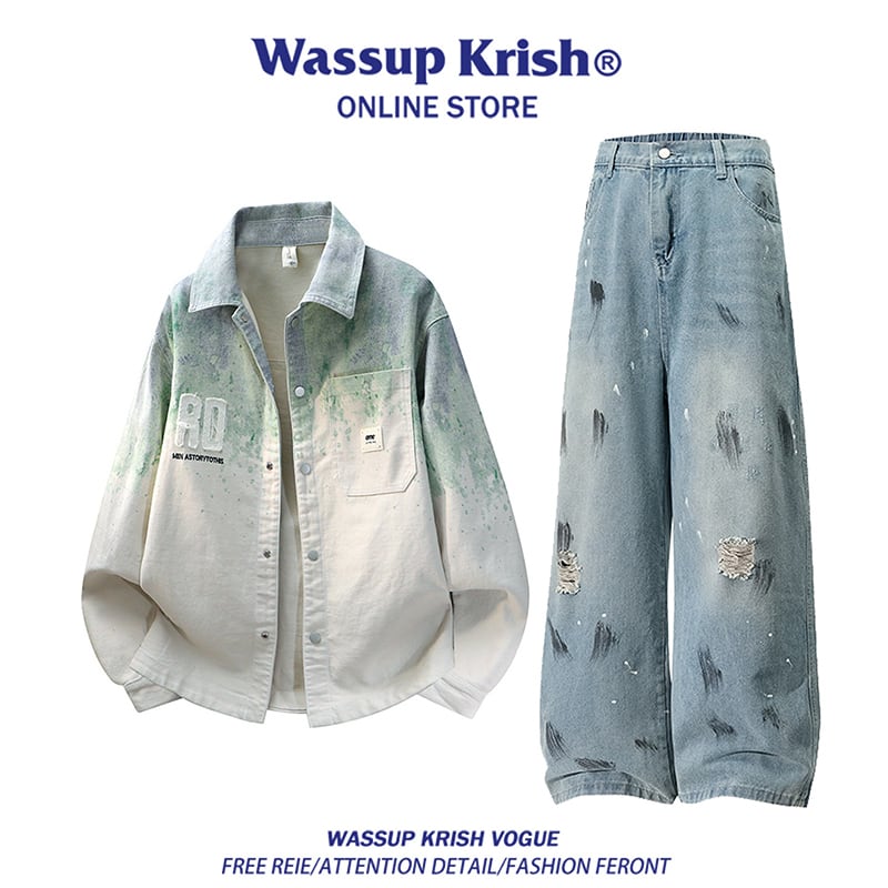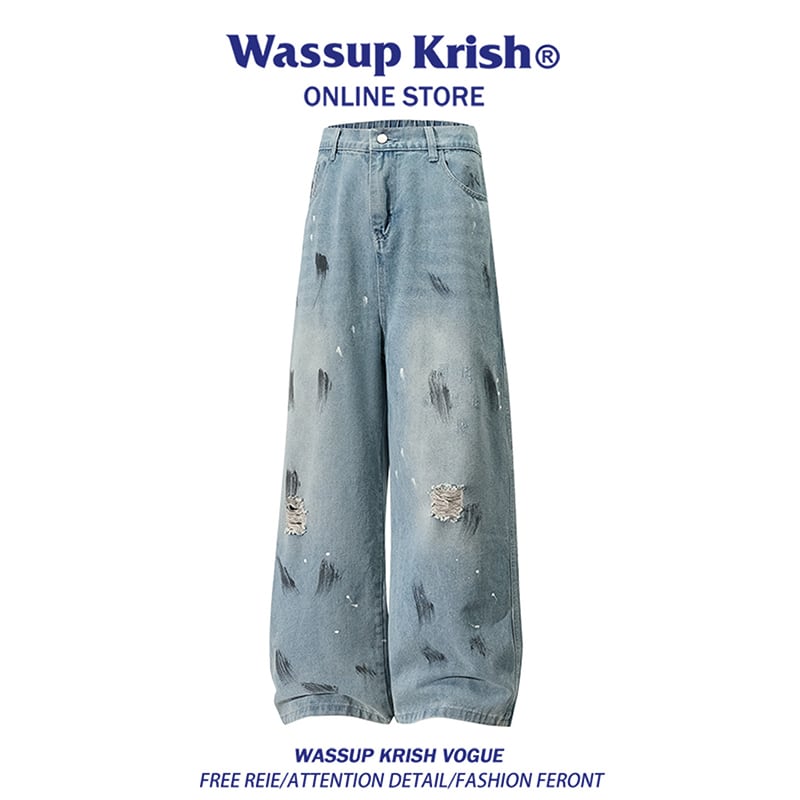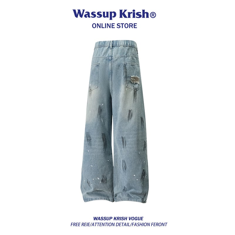 ඩグラフィティと、新しい風!【WSシリーズ】★デニムパンツ★ ユニセックス ズボン ボトムス 落書き ダメージ加工