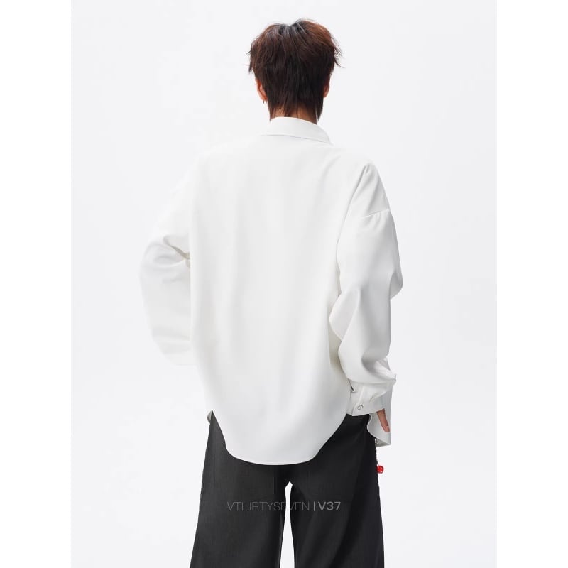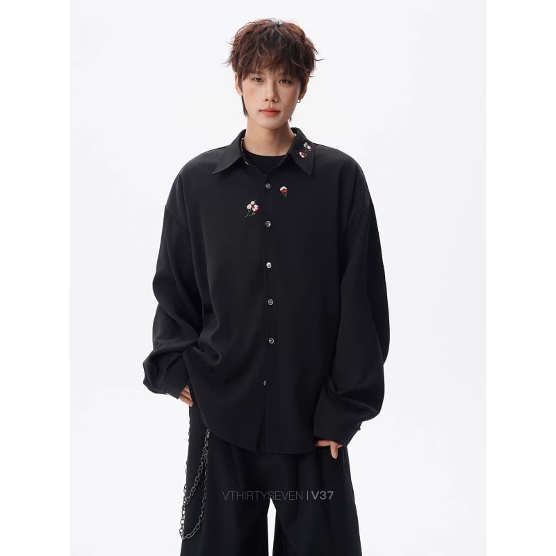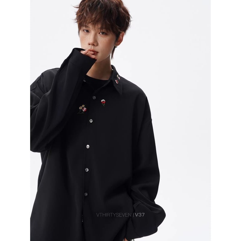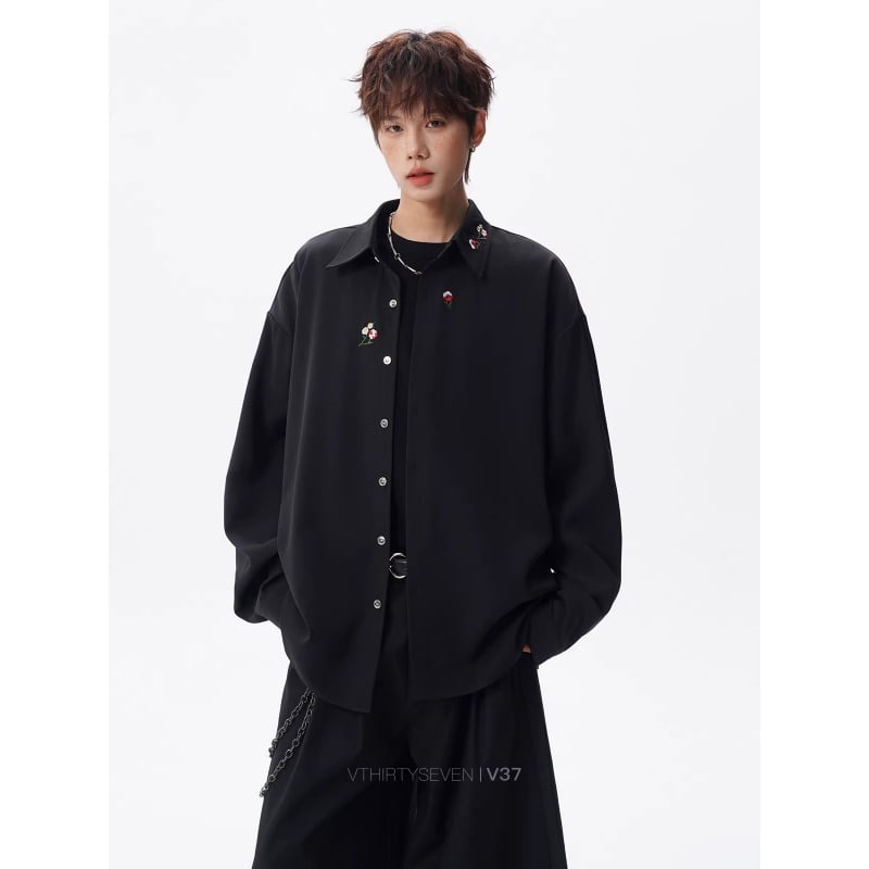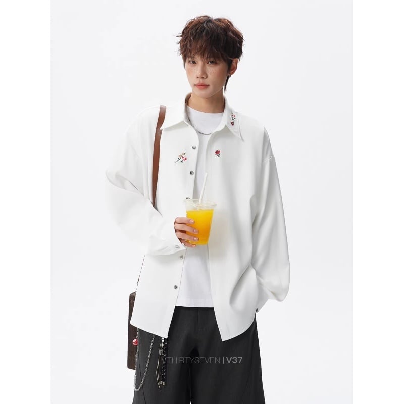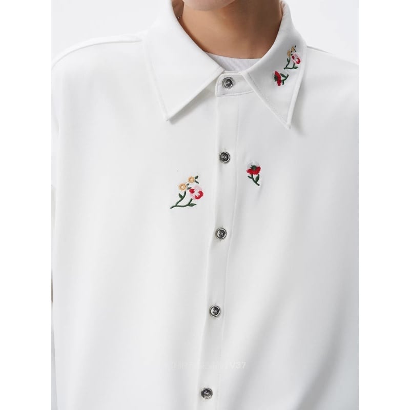 ♥刺繍デザイン、新中式スタイルシャツ!【V37シリーズ】★シャツ★ 2color 黒と白 トップス 刺繍 男女兼用 メンズ シンプル 無地