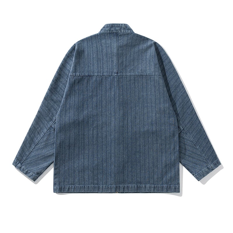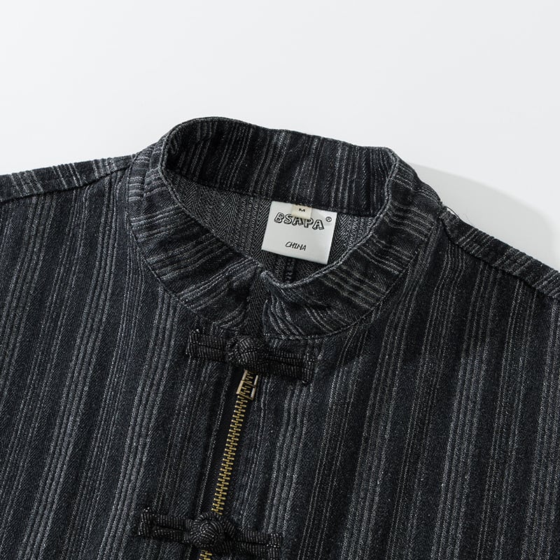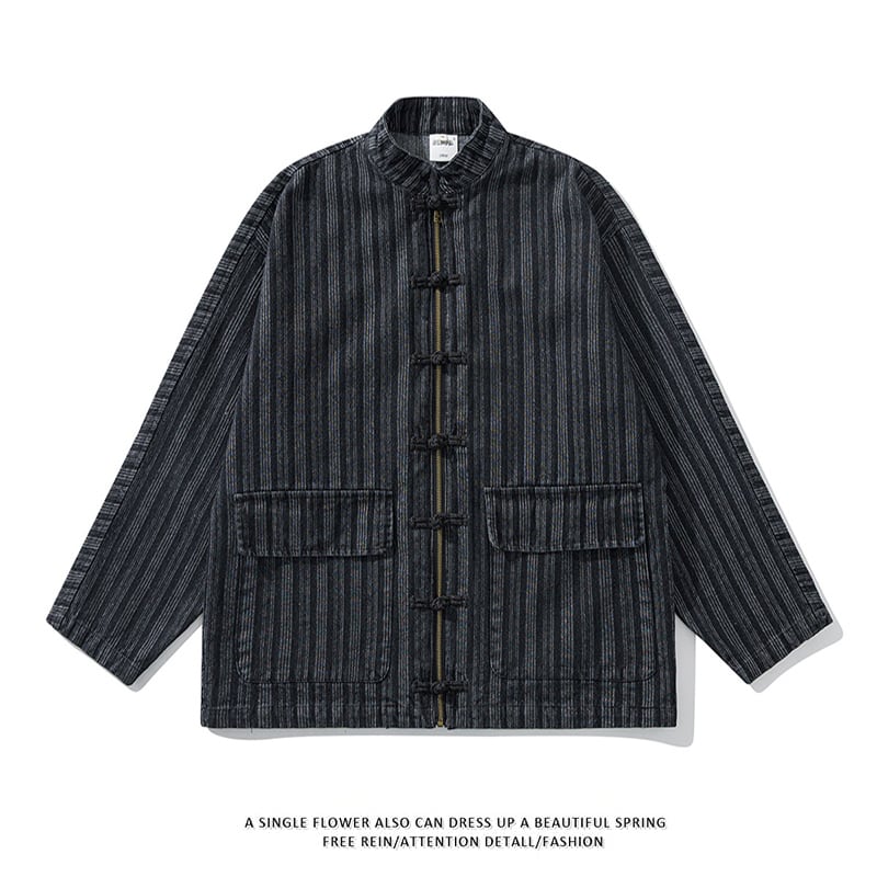 ♥チャイナ風デニムジャケット!【WSシリーズ】★チャイナ風アウター★ 2color ジャケット シャツジャケット デニム 縦縞 チャイナボタン