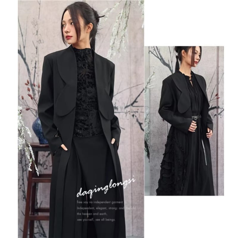✿フォーマルとデザイン感が融合した 上品なスーツ!【大青龍肆シリーズ】★チャイナ風アウター★ チャイナ風 スーツ オリジナル すっきり ショート丈