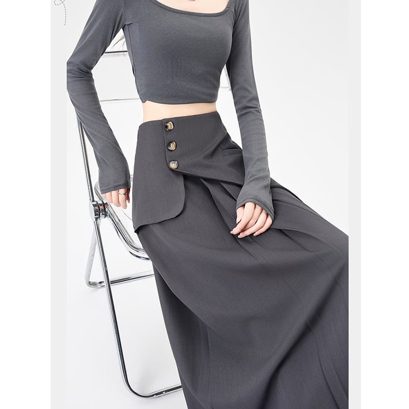 ♬今年のスカートはこれ!【YIRENシリーズ】★スカート★ 3color ボトムス レディース グレー ブラック ネイビー