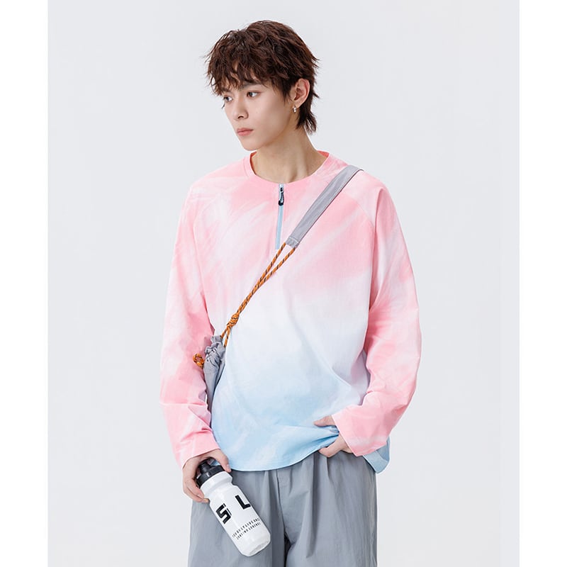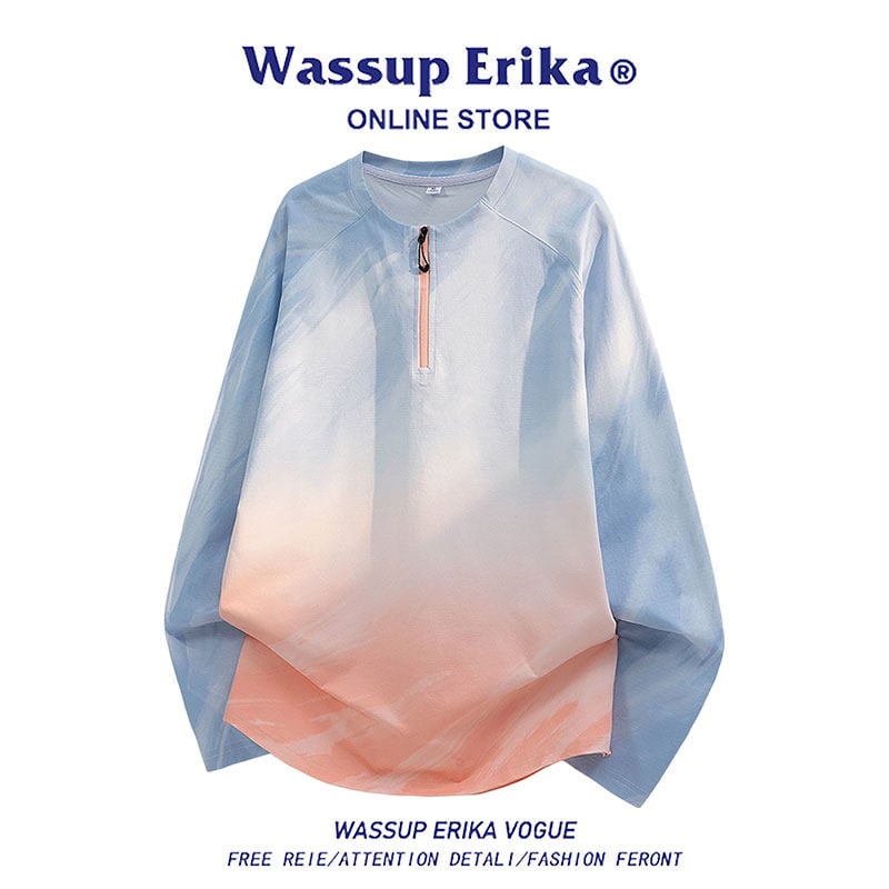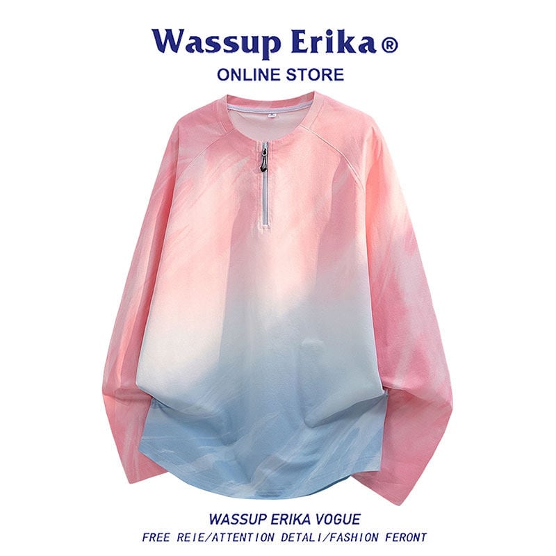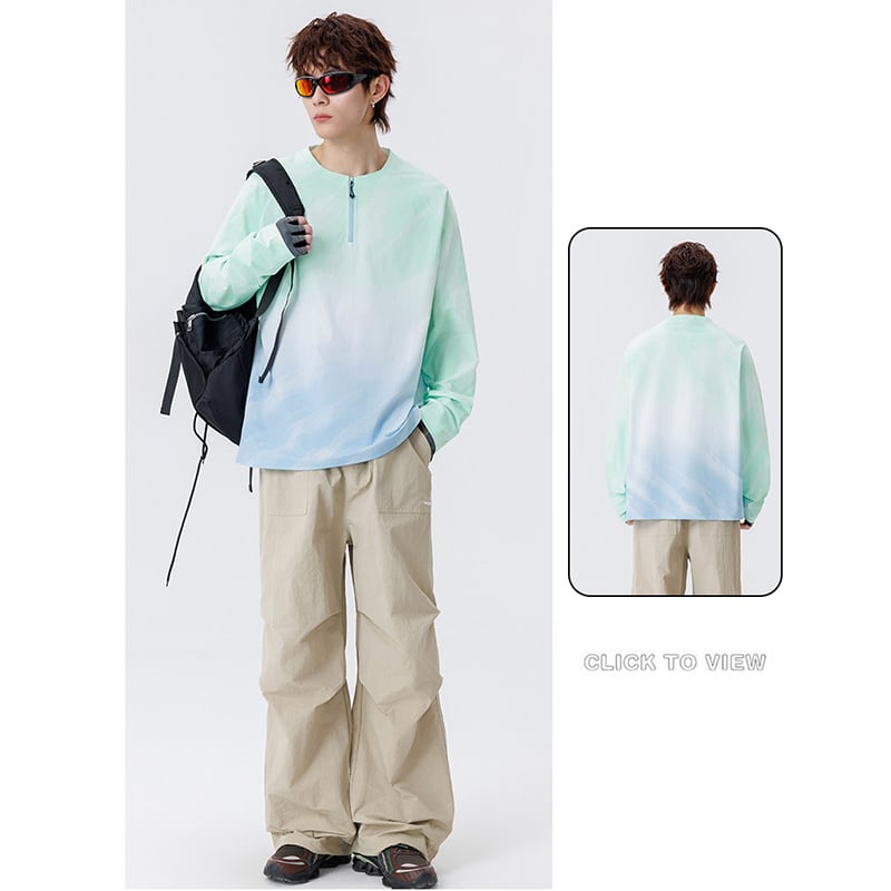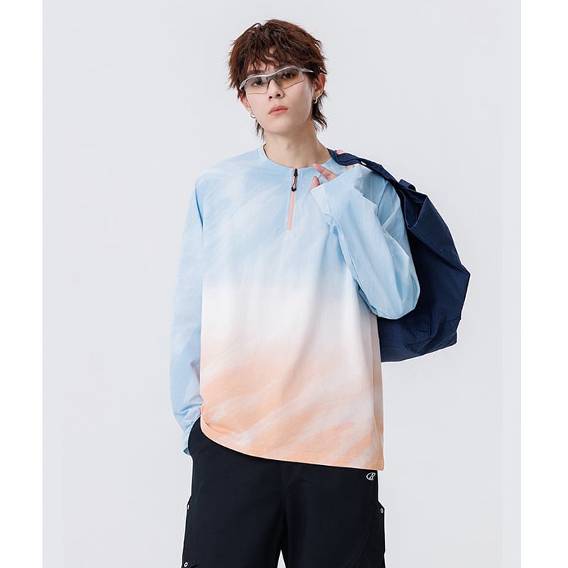 ♥今っぽいハーフジップスウェット!【WSシリーズ】★トップス★ 3color スウェット ユニセックス メンズ 大きいサイズ グラデーション