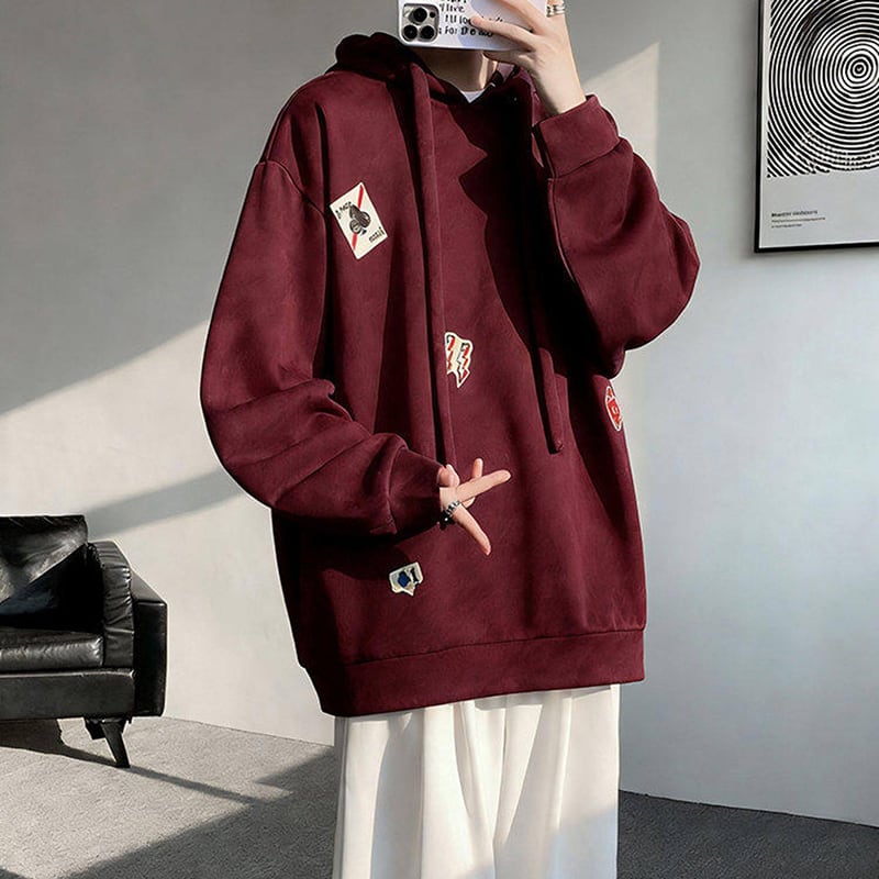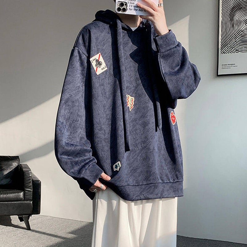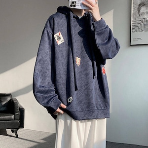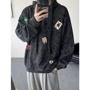 ♥レトロ4色展開パーカー!【CEXUシリーズ】★パーカー★ 4color トップス ユニセックス メンズ シンプル 大きいサイズ 赤 青 黒 トランプ