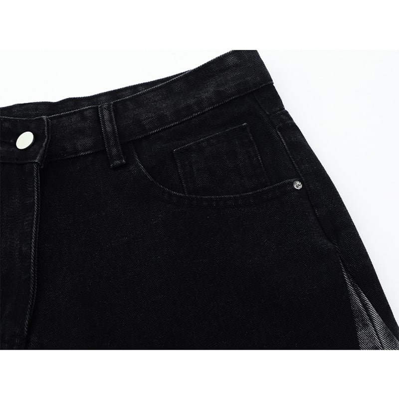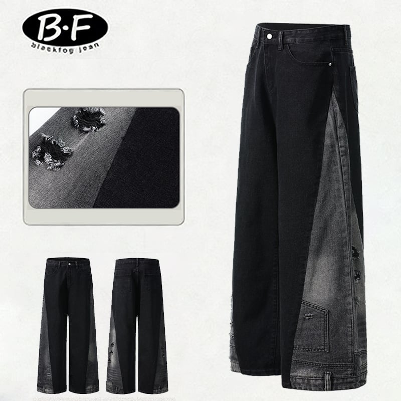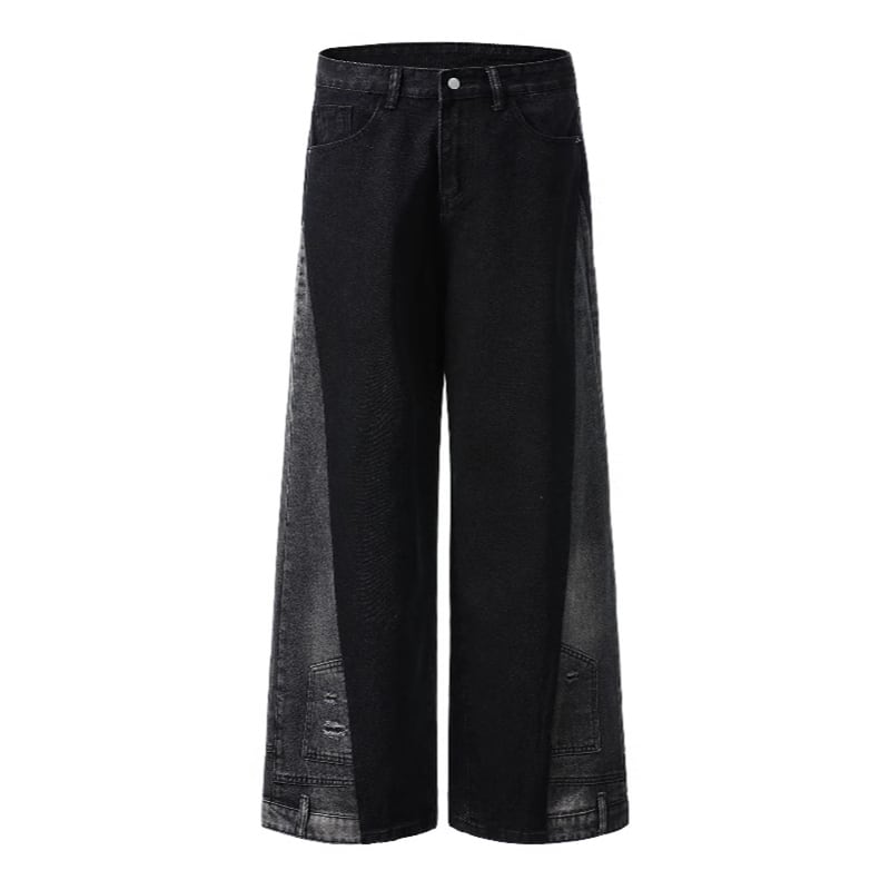 ඩウォッシュ加工が大人かっこいい!【WSシリーズ】★デニムパンツ★ ユニセックス ズボン ボトムス メンズ レトロ 切り替え 個性的