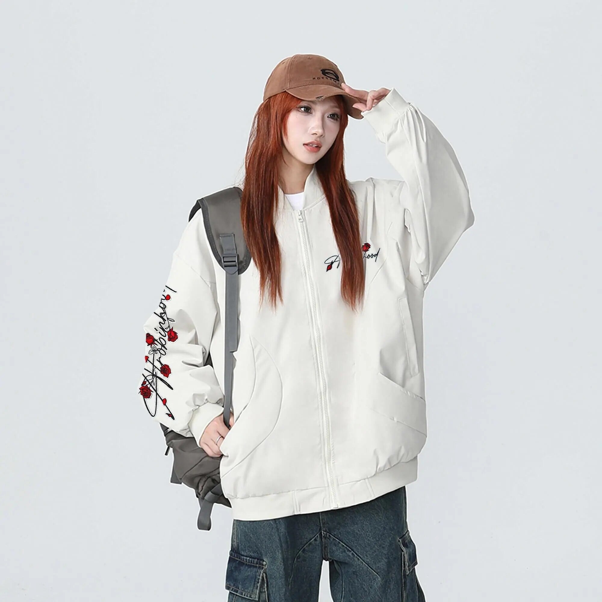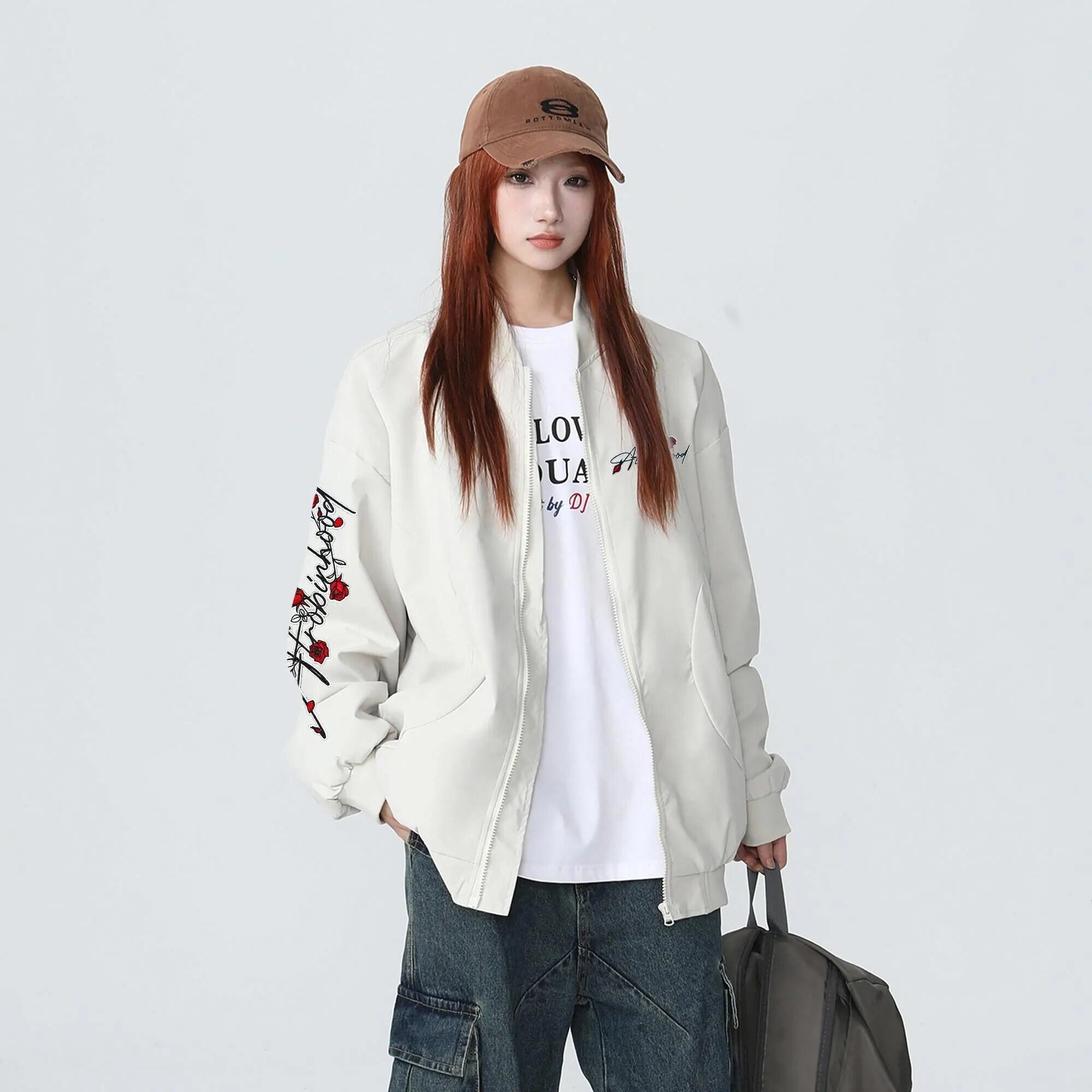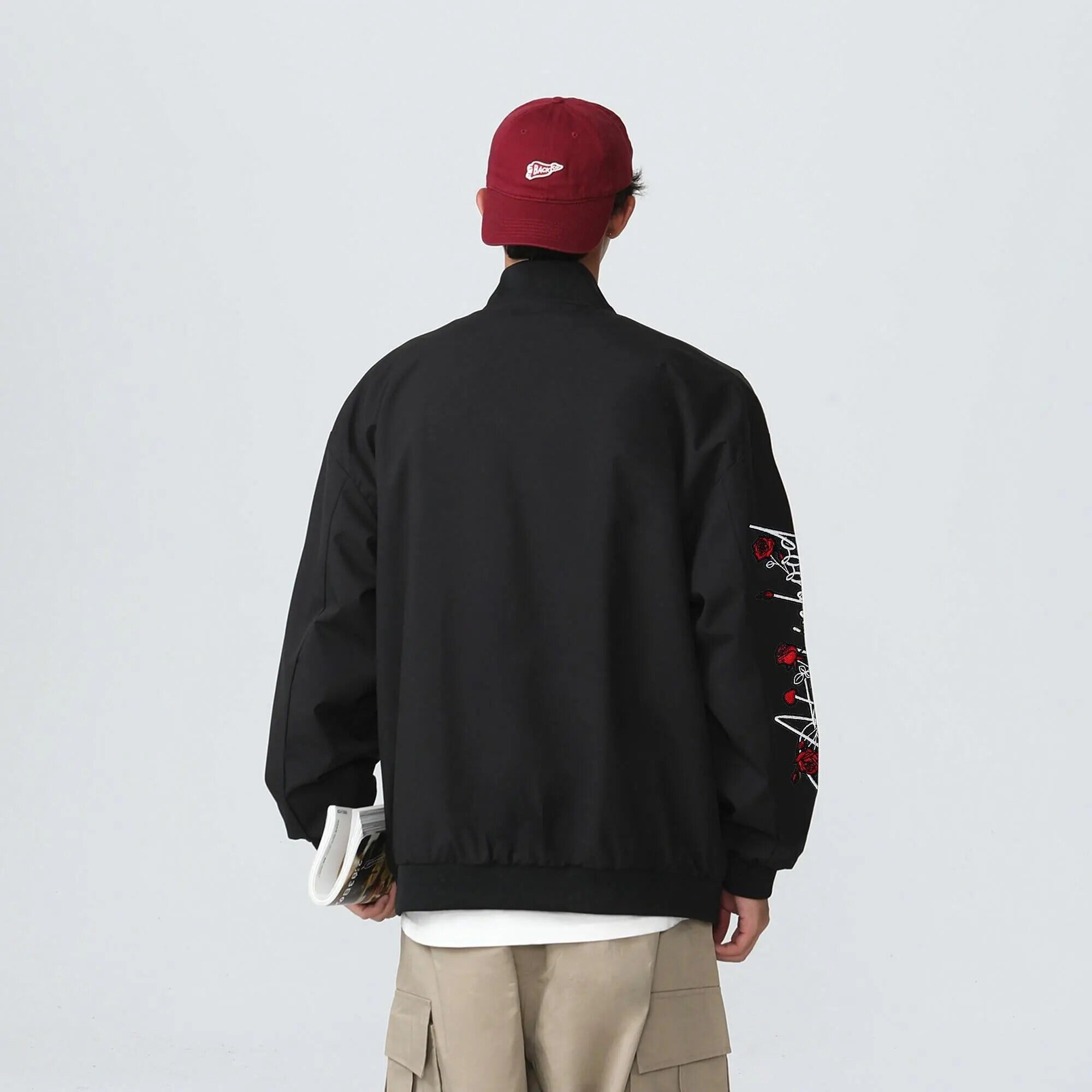 ৡ薔薇柄ジャケット!【ImcTLシリーズ】★ジャケット★ ユニセックス 2color アウター 花柄 プリント スタンドネック