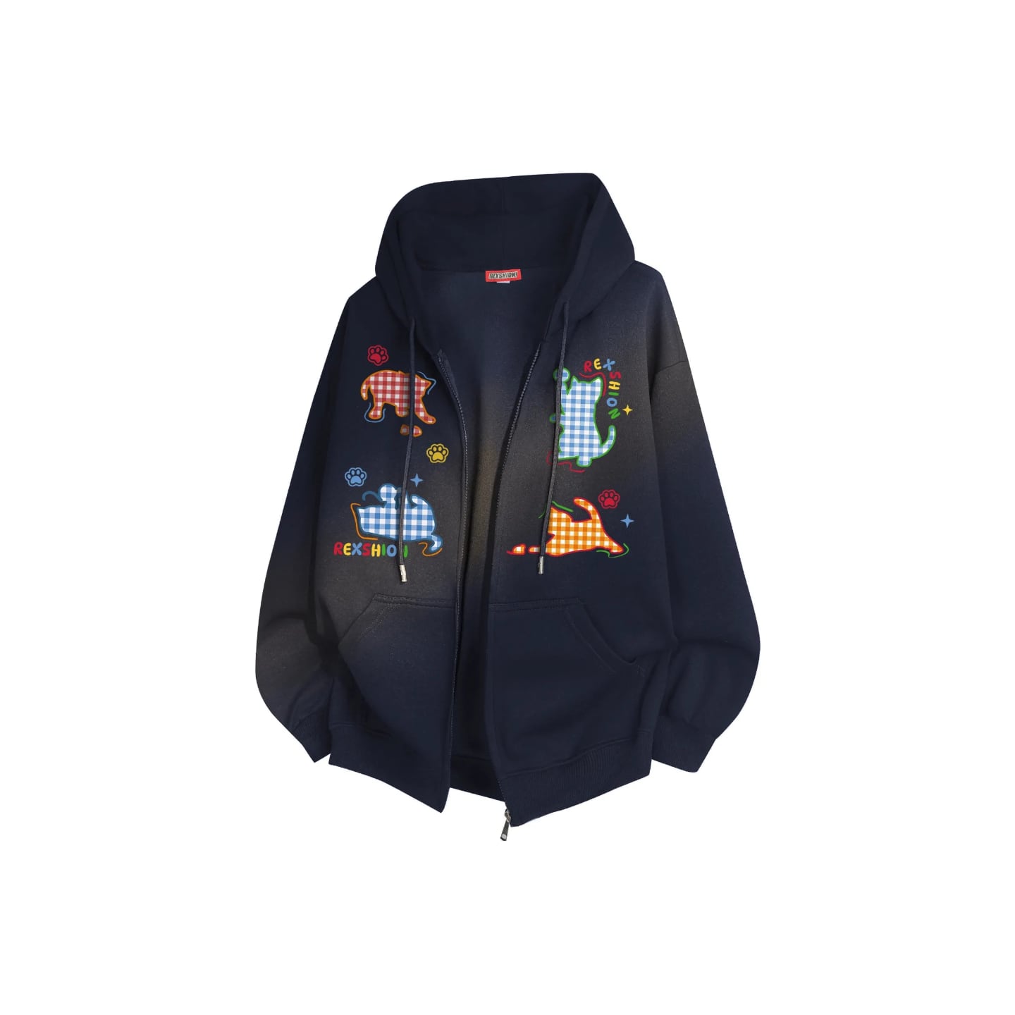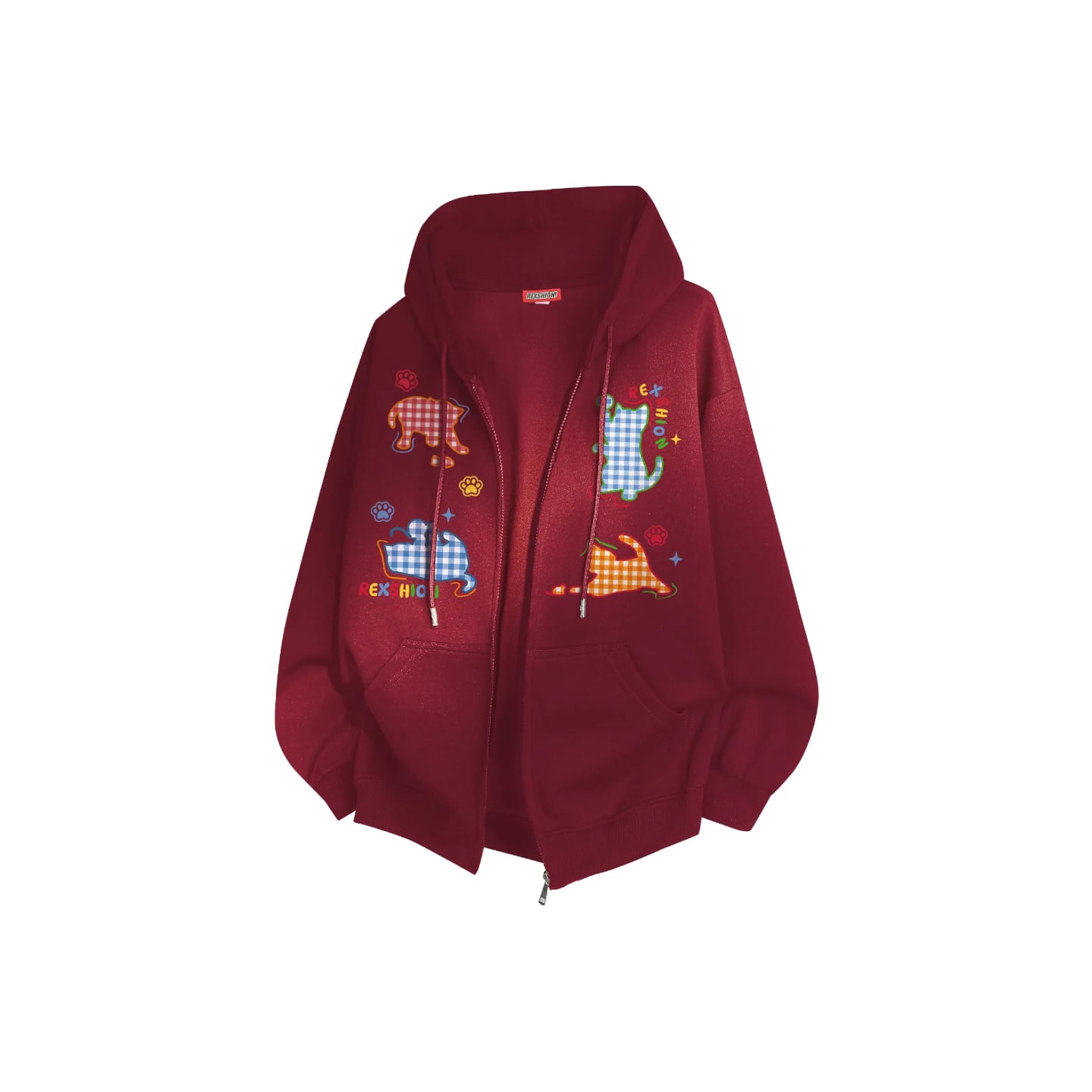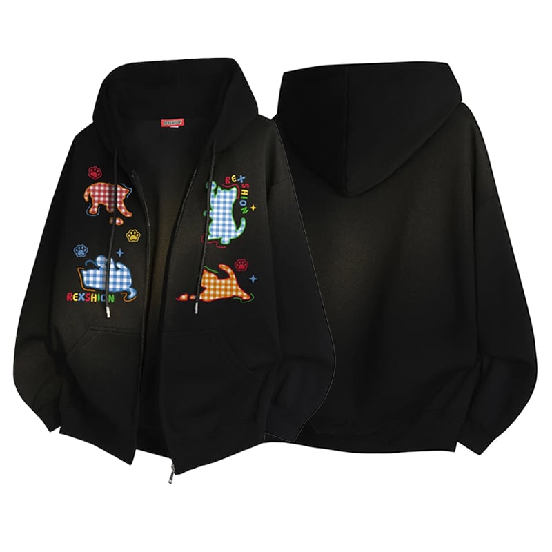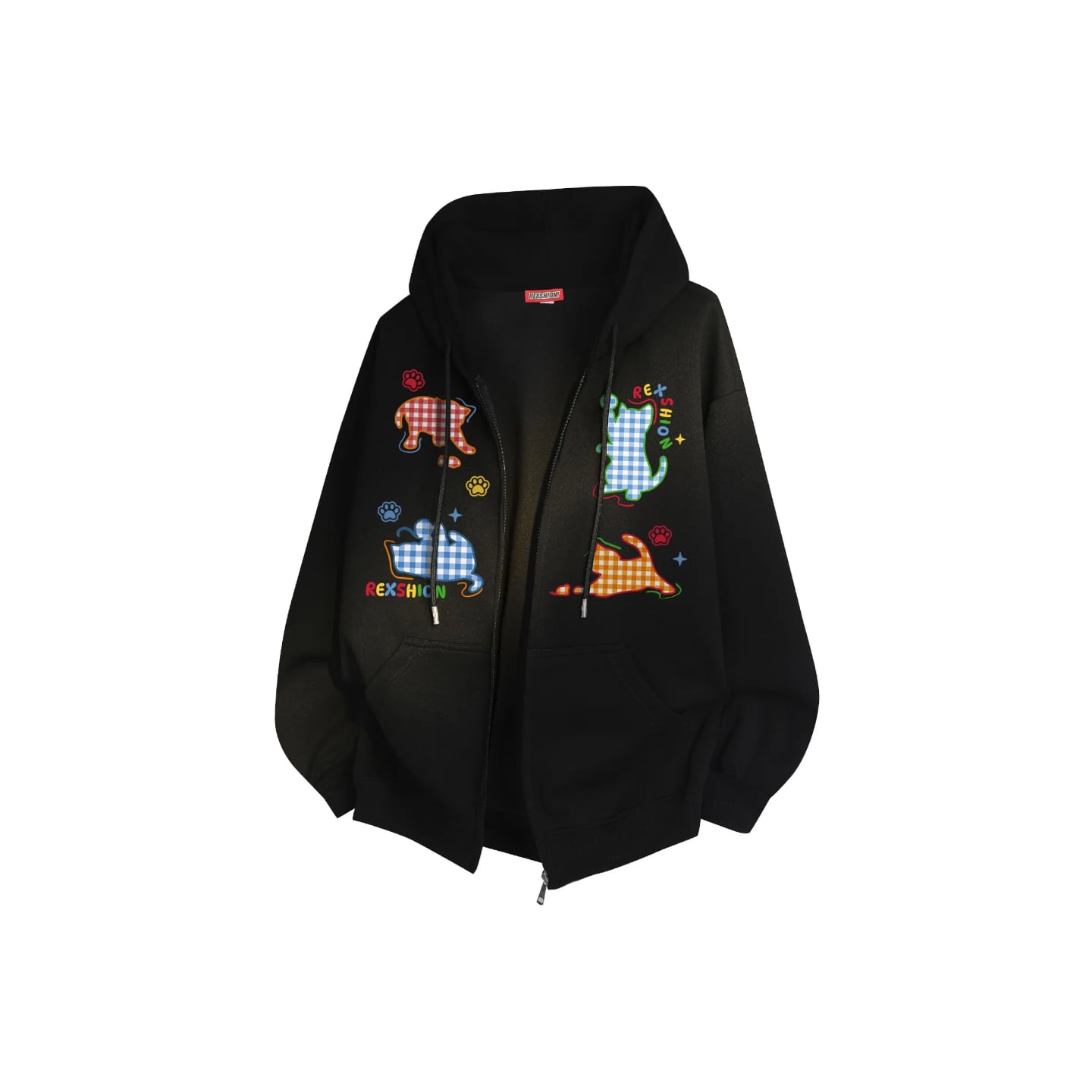 ♥チェック×猫の新感覚!【ImcTLシリーズ】★アウター★ ユニセックス 7color ジャンプパーカー カジュアル メンズ レディース