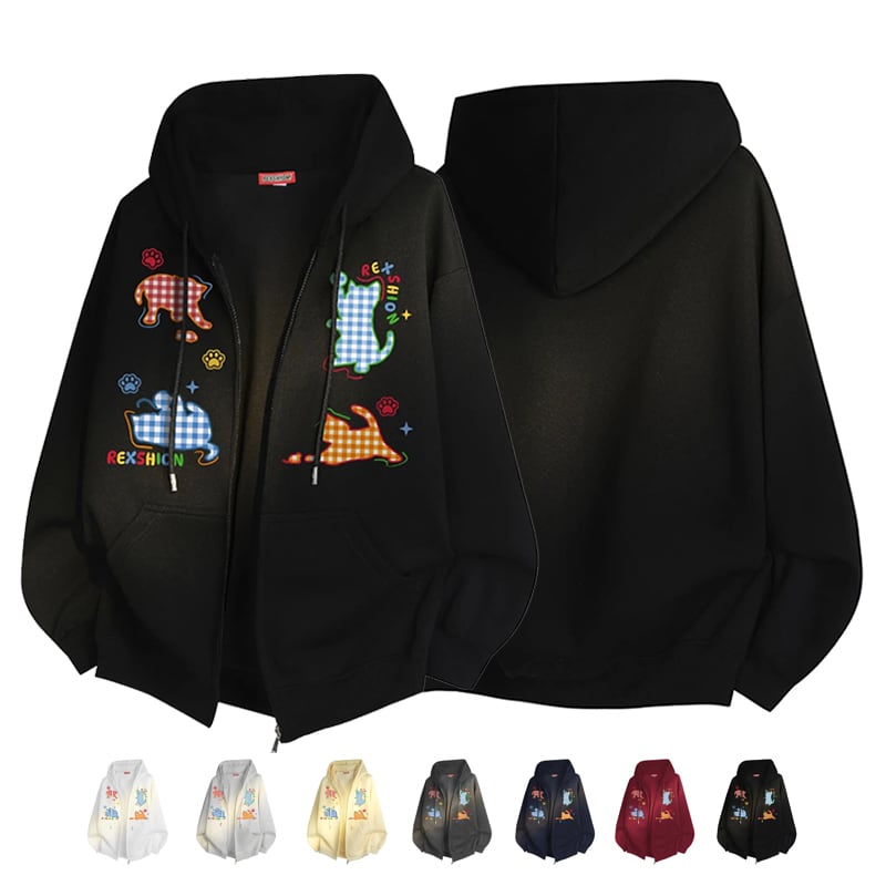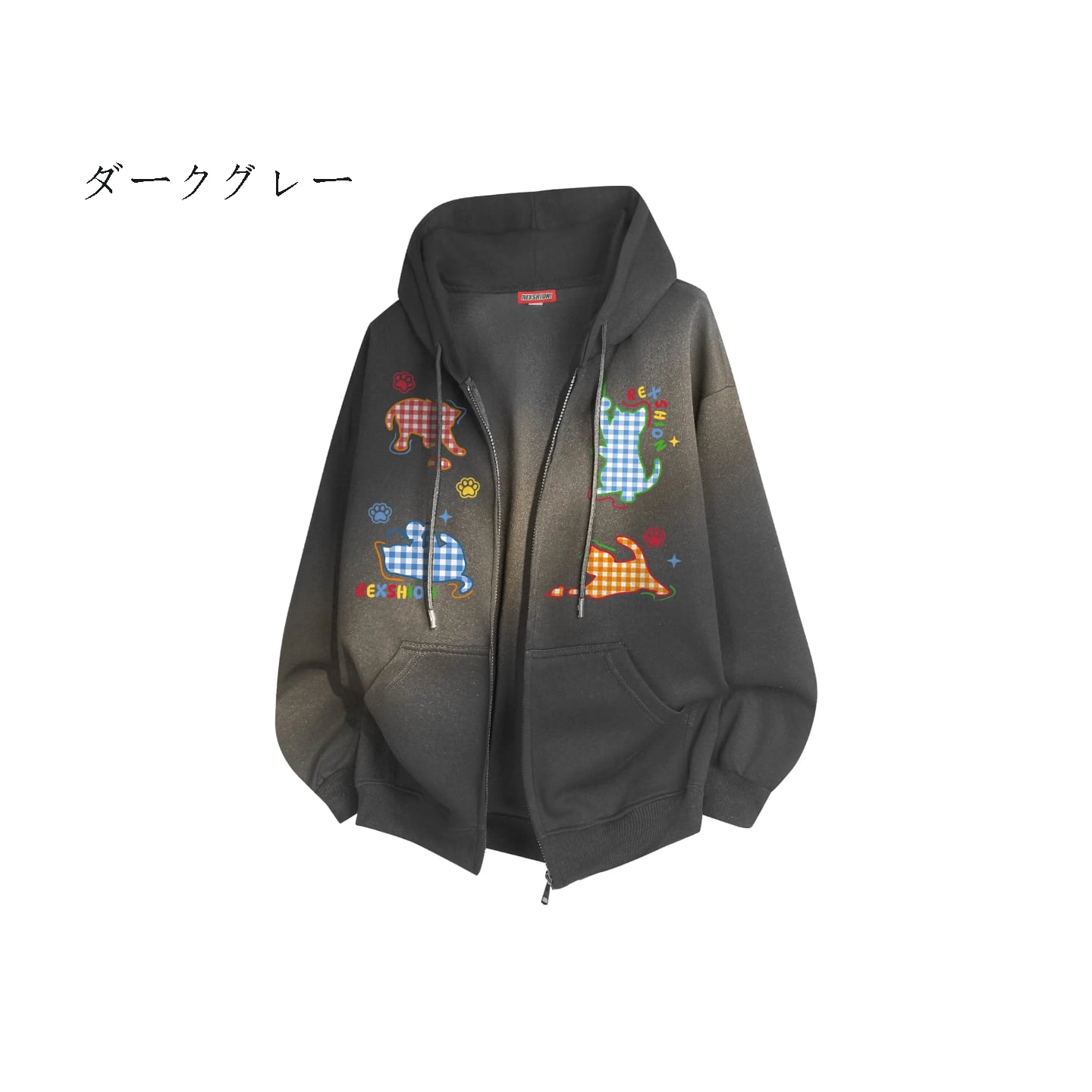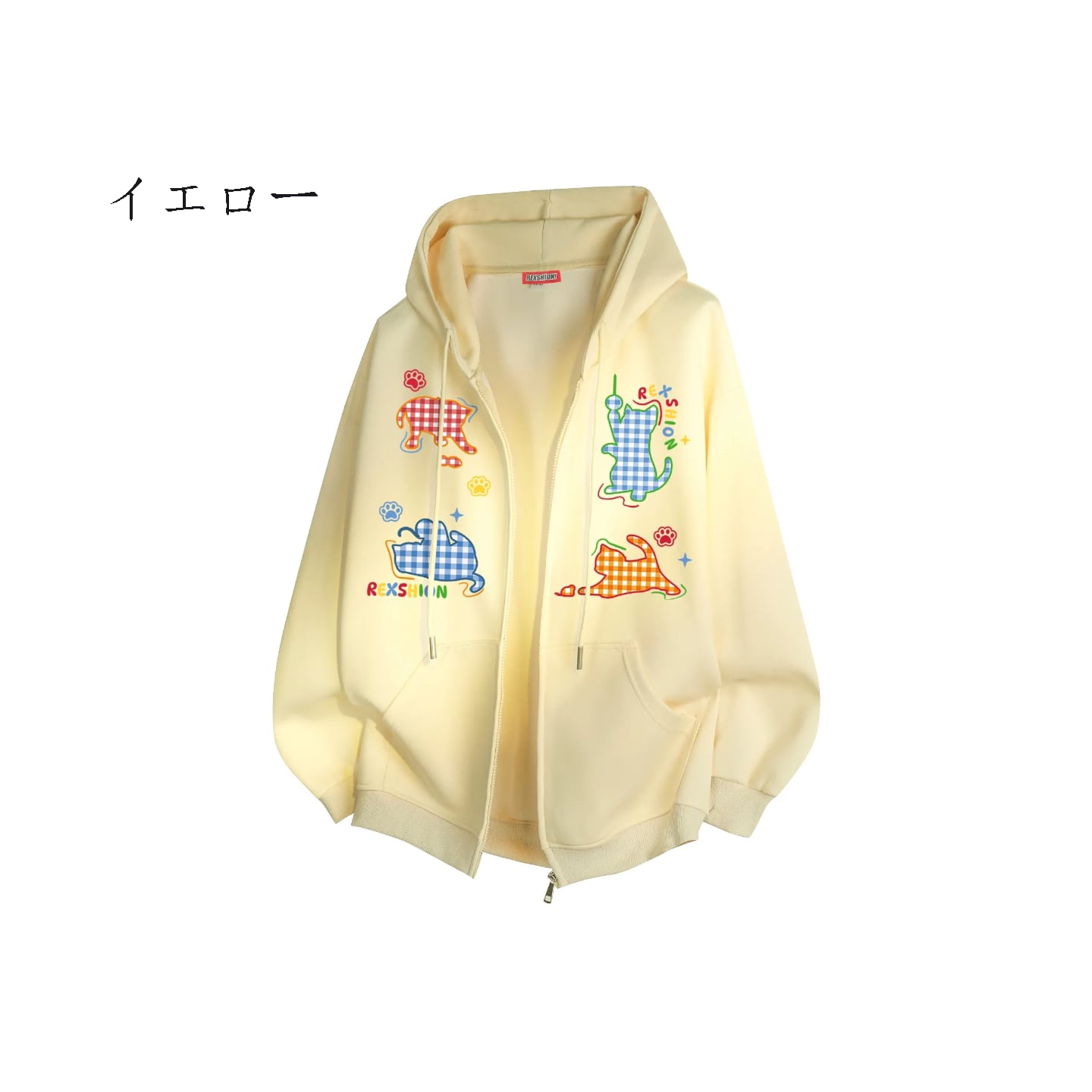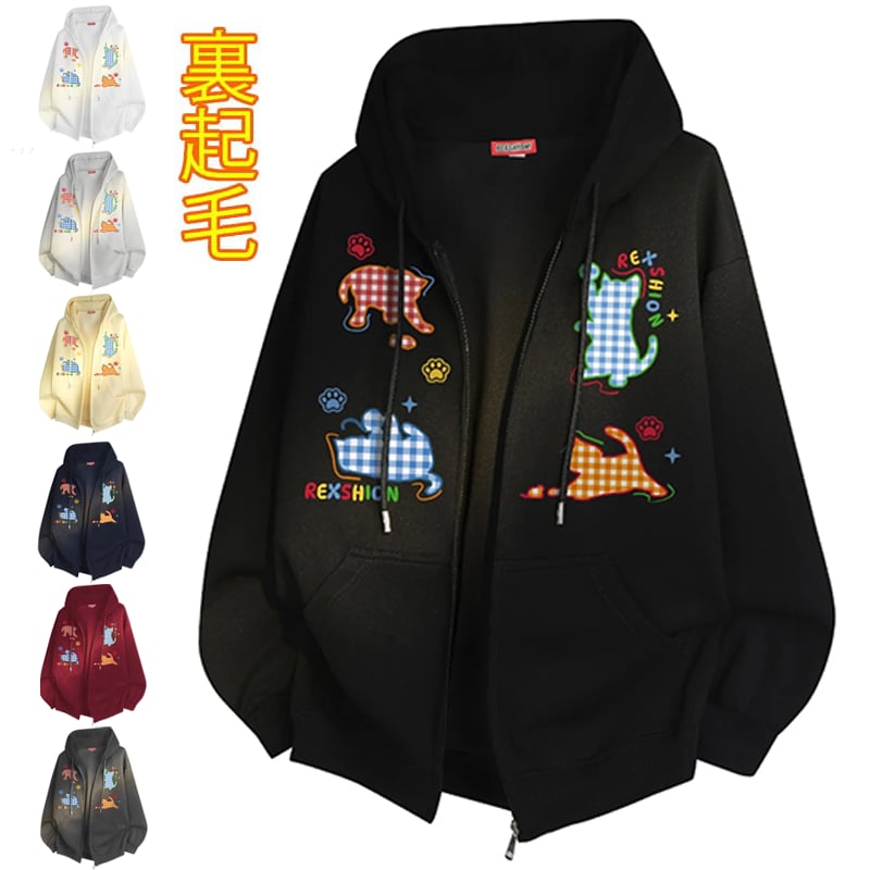 ♥チェック猫のアクセント!【ImcTLシリーズ】★アウター★ 裏起毛 ユニセックス 7color ジャンプパーカー カジュアル メンズ レディース