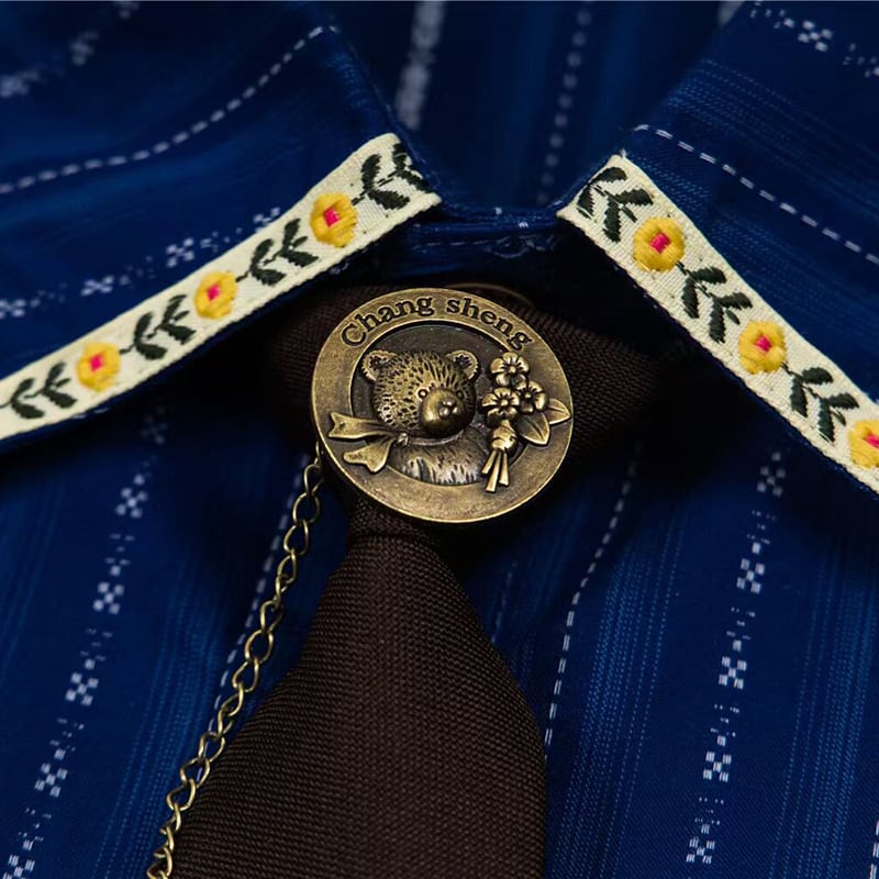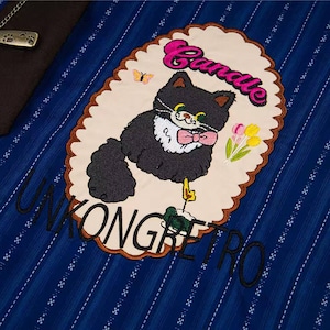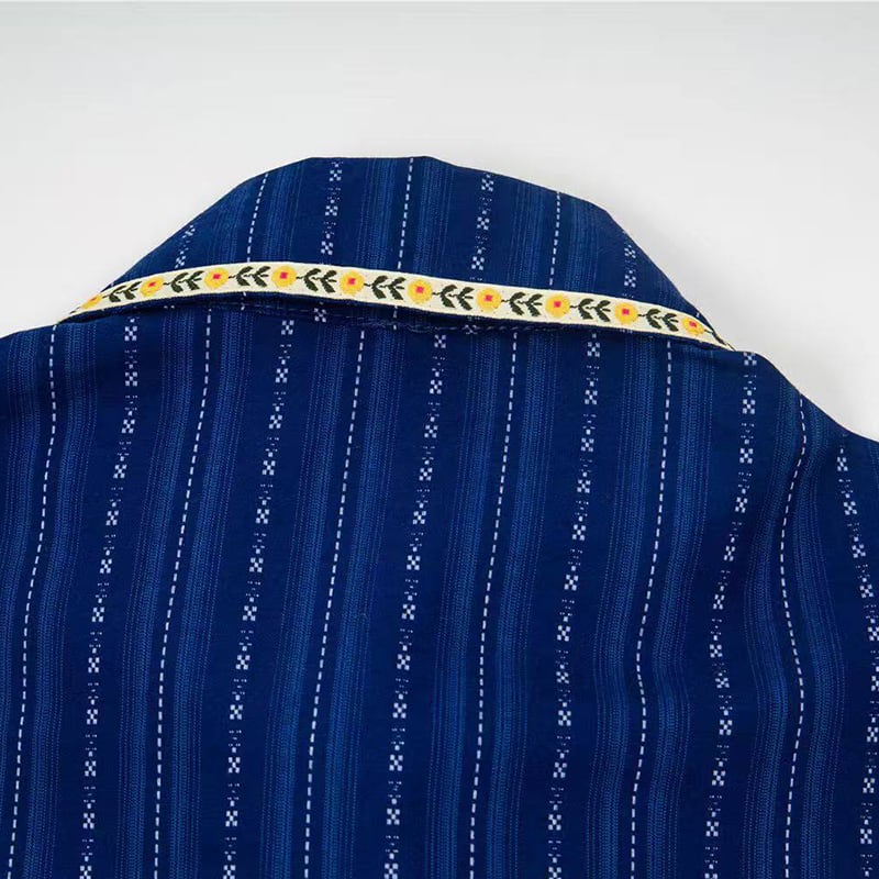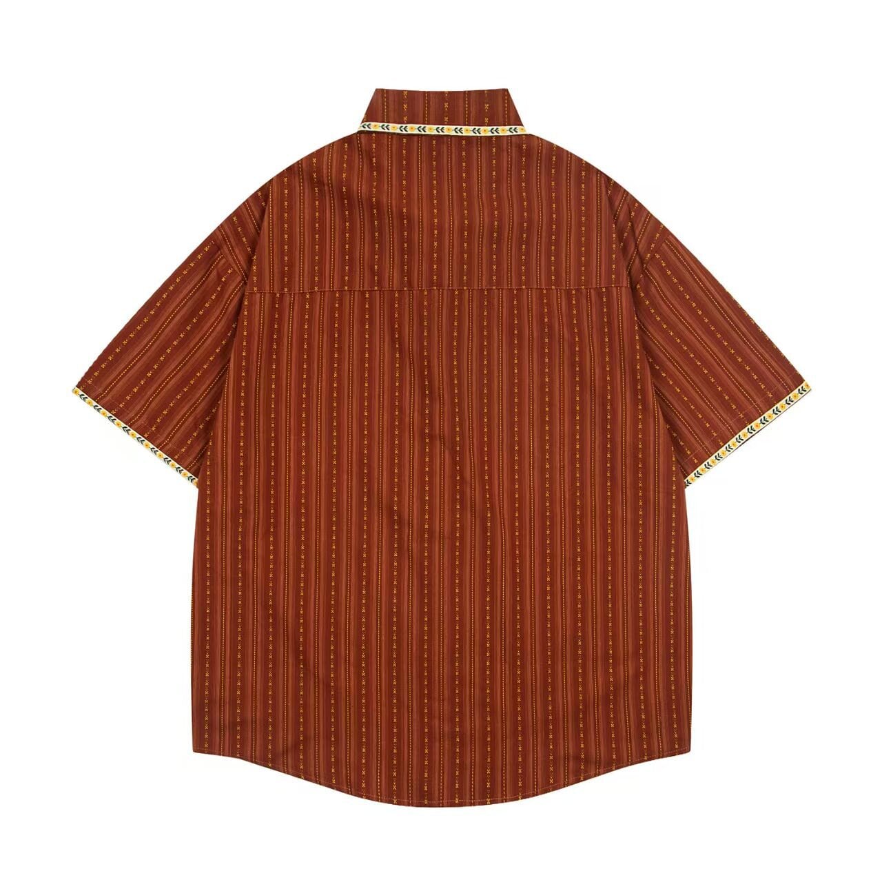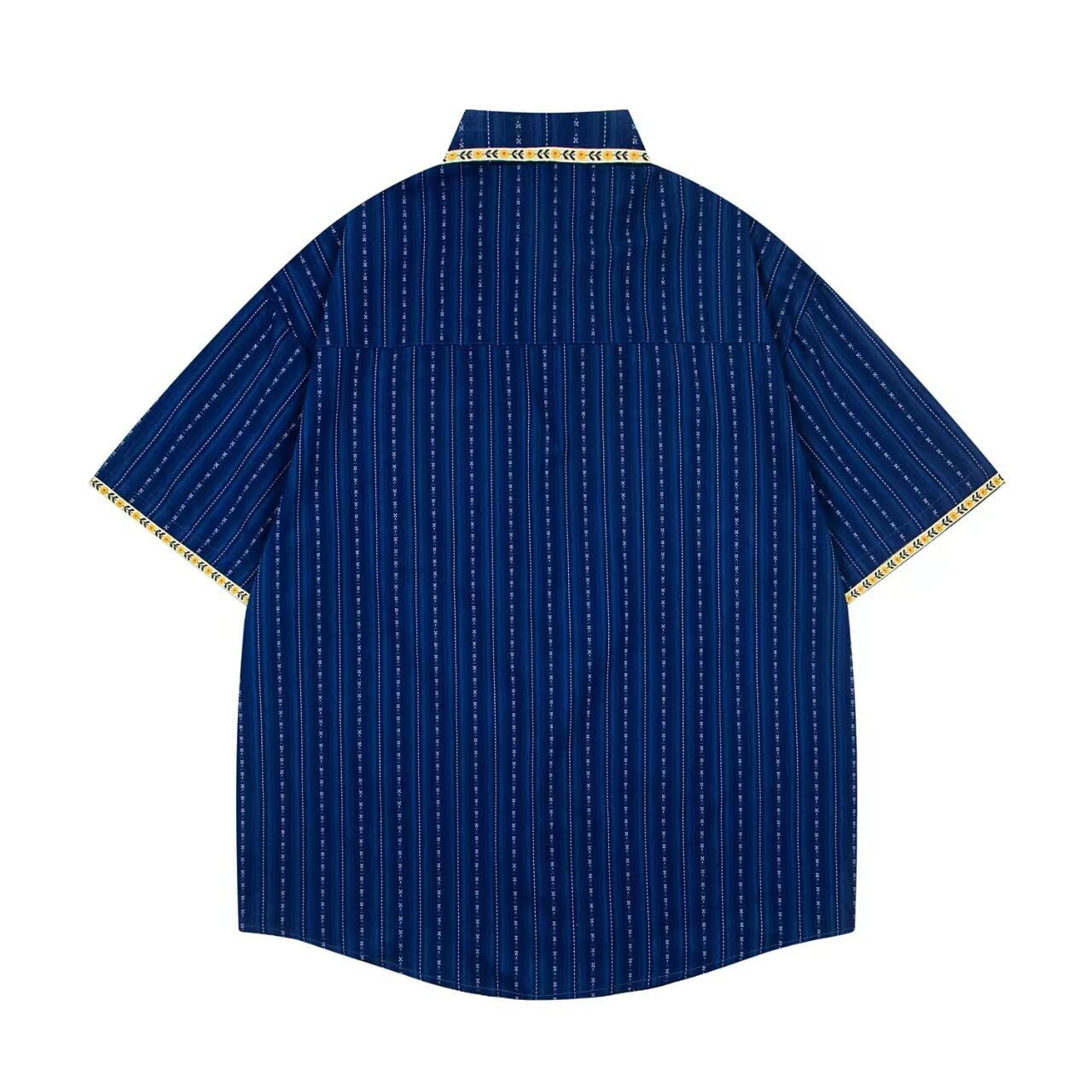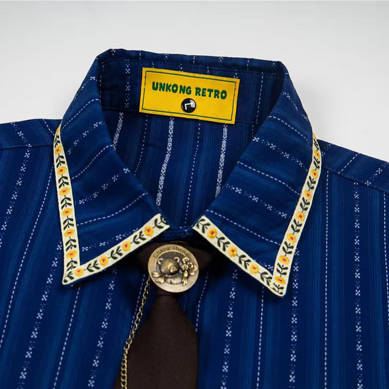 ❀超可愛い縦縞猫柄シャツ!【UATONLINEシリーズ】★シャツ★ 2color ユニセックス レトロ ネクタイ付きシャツ トップス 半袖シャツ カートゥーン 猫柄 縦縞 縞模様