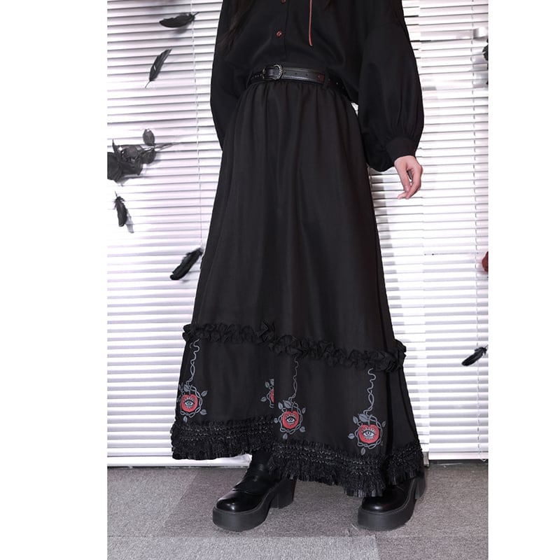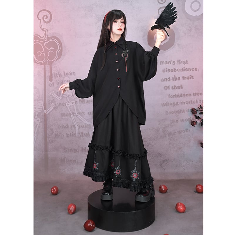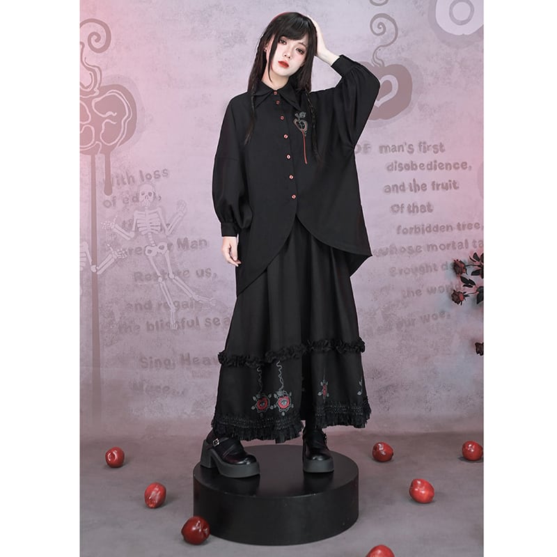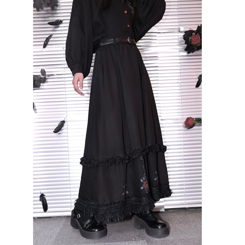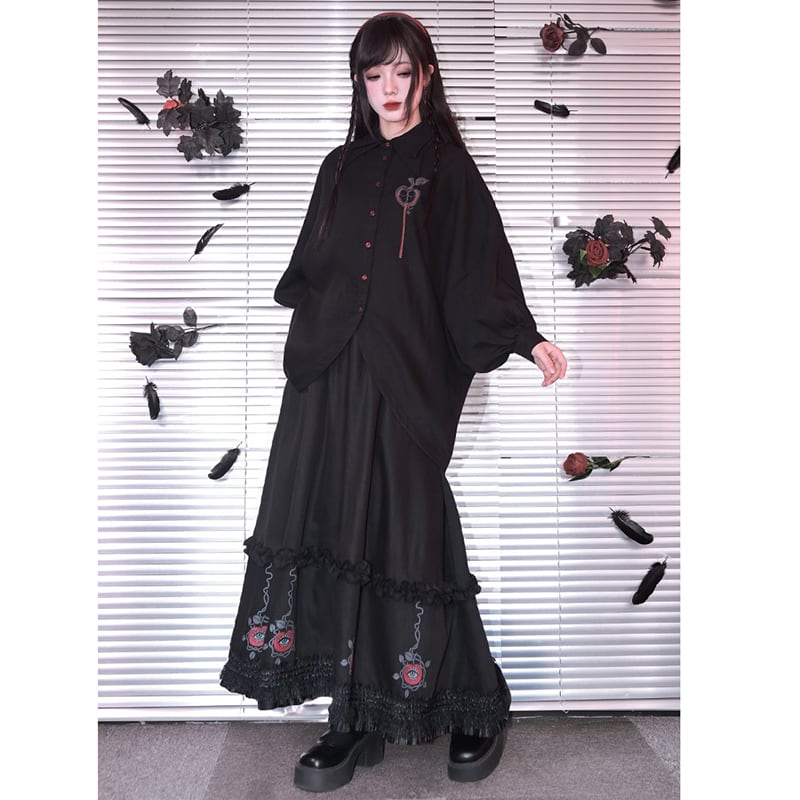 ♥裾をひいて、夜を歩く!【古怪舍---伊甸園シリーズ】★チャイナ風スカート★ ボトムス 切り替え ブラック 黒い