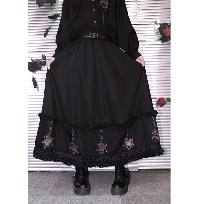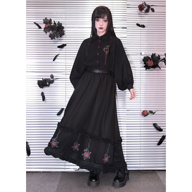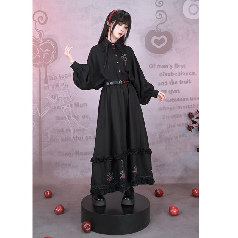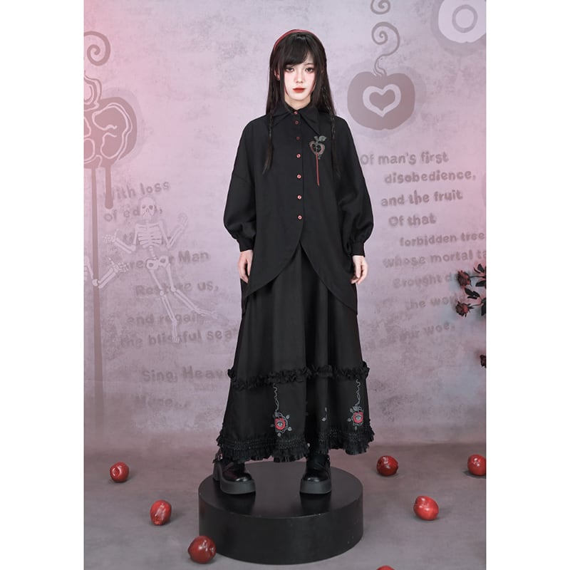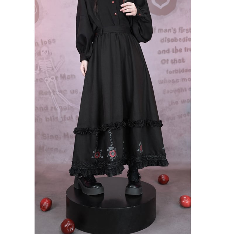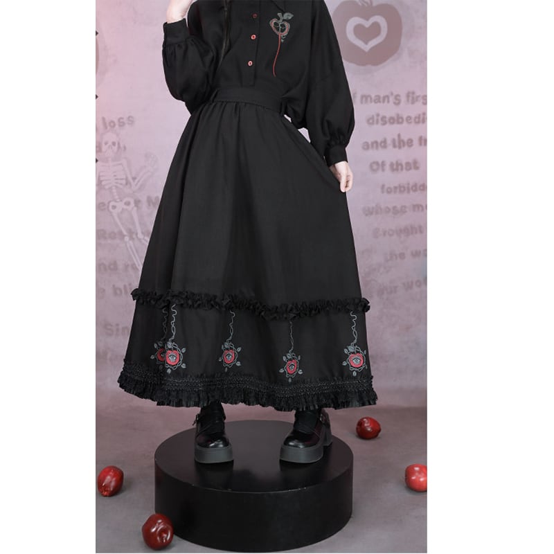 ♥裾をひいて、夜を歩く!【古怪舍---伊甸園シリーズ】★チャイナ風スカート★ ボトムス 切り替え ブラック 黒い