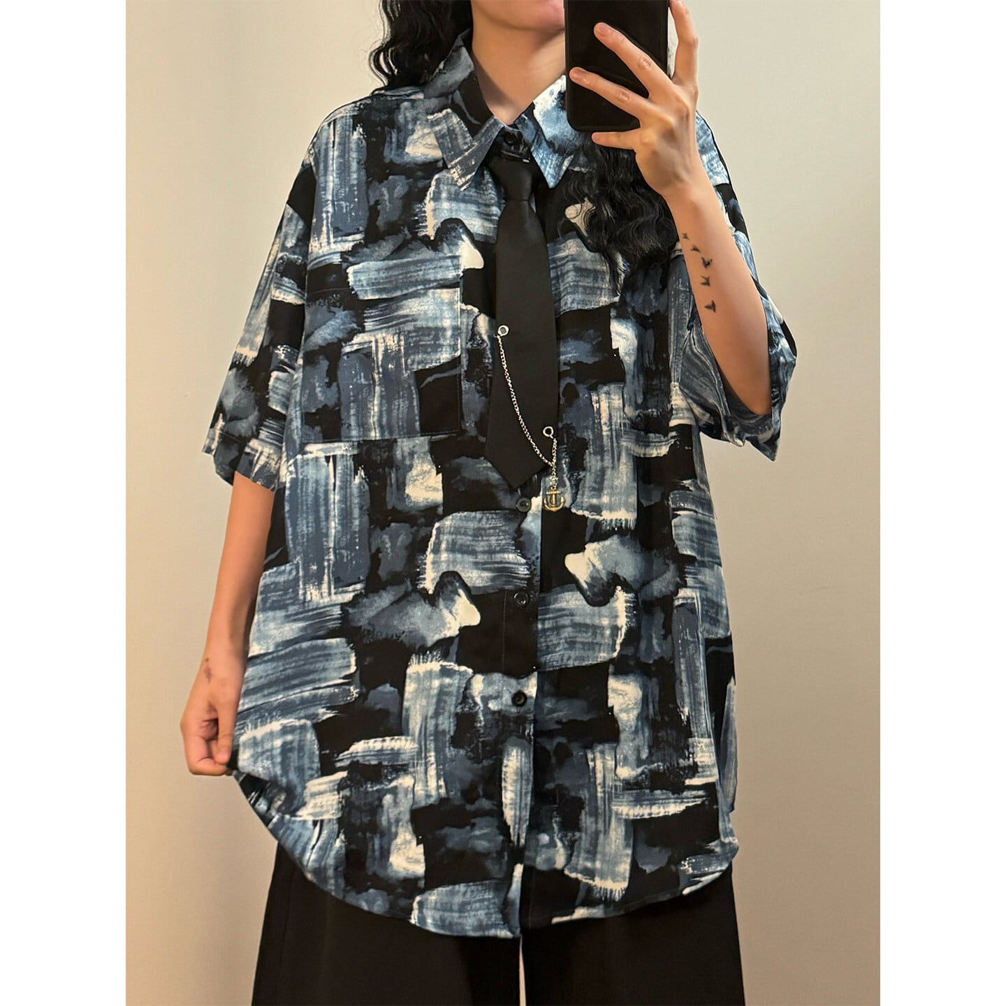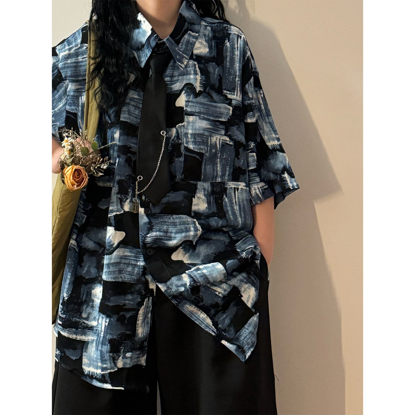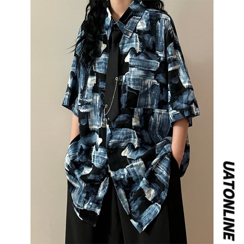 ❀街歩きも、旅も、この1枚で!【UATONLINEシリーズ】★シャツ★ ネクタイ付き ユニセックス レトロ 半袖 花柄