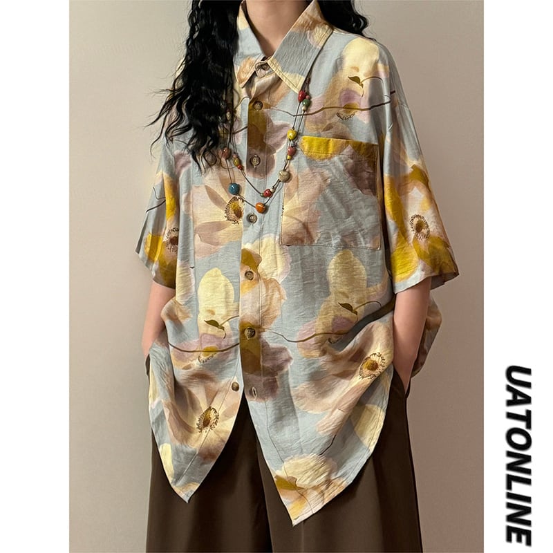 ❀二度と出会えない、この色!【UATONLINEシリーズ】★シャツ★ ユニセックス レトロ トップス 半袖 油絵風