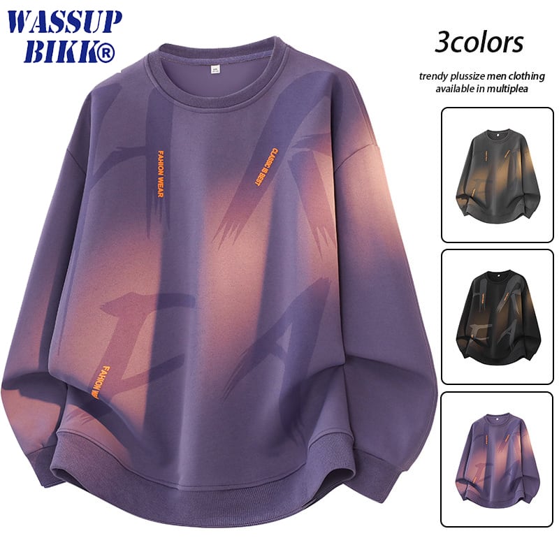 ♥3色展開トップス!【WSシリーズ】★トップス★ 3color スウェット ユニセックス メンズ 大きいサイズ ラウンドネック 紫 黒 灰