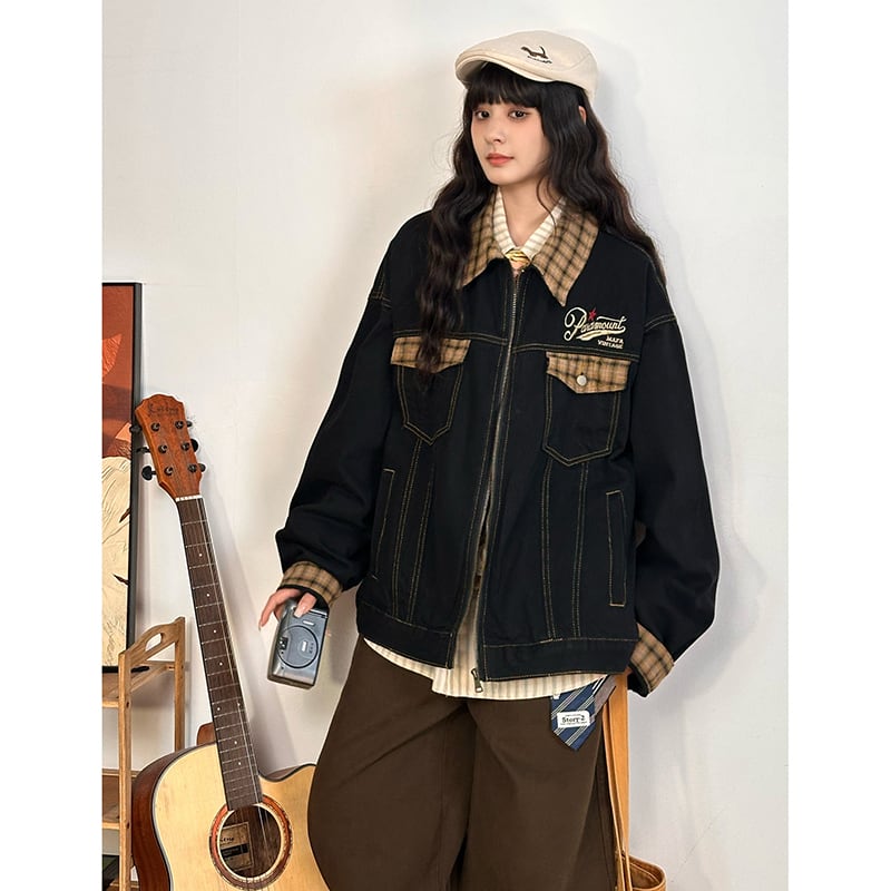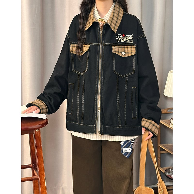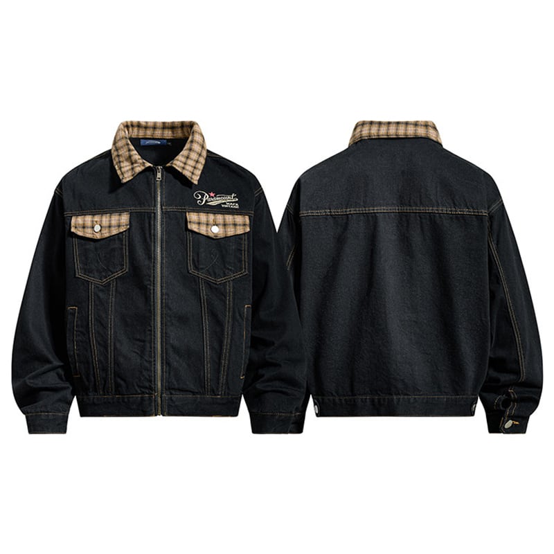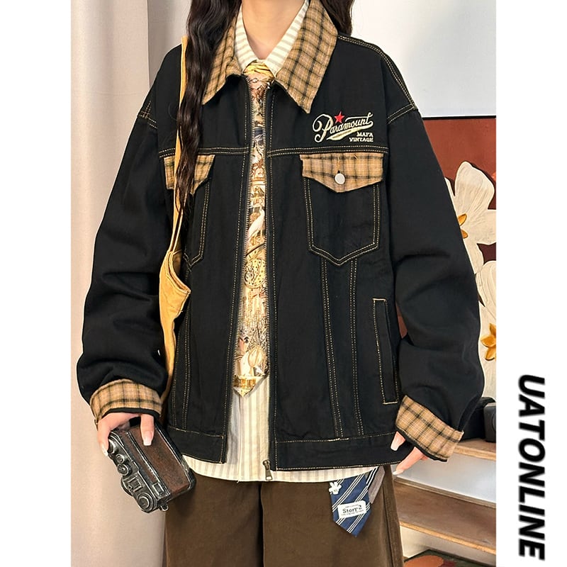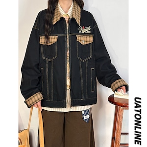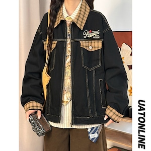 ♥チェック×デニム。最強タッグ!【UATONLINEシリーズ】★ジャケット★ チェック柄 ユニセックス アウター デニム 配色