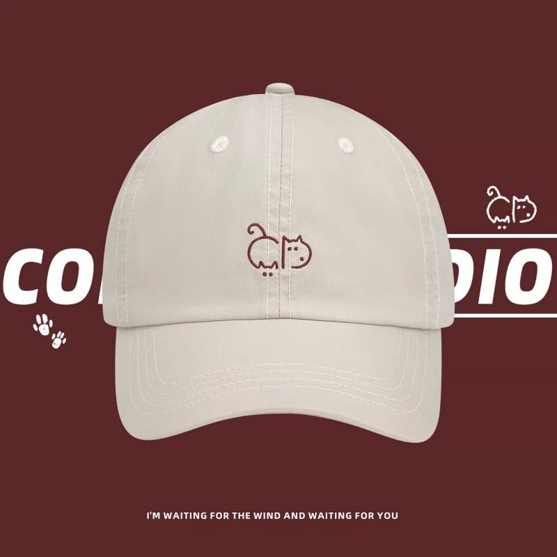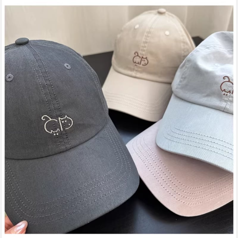 ❀かわいい猫刺繍キャップ、顔が小さく見える【COISINIシリーズ】★帽子★ 6color コットン ぼうし レディース ネコ 猫 アクセサリー