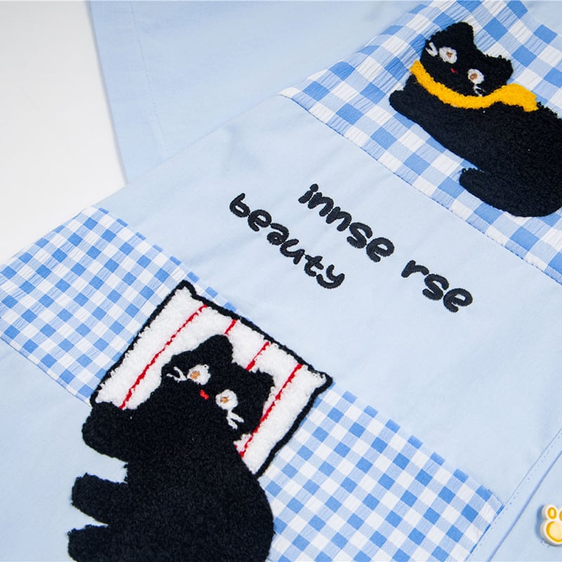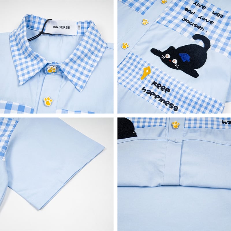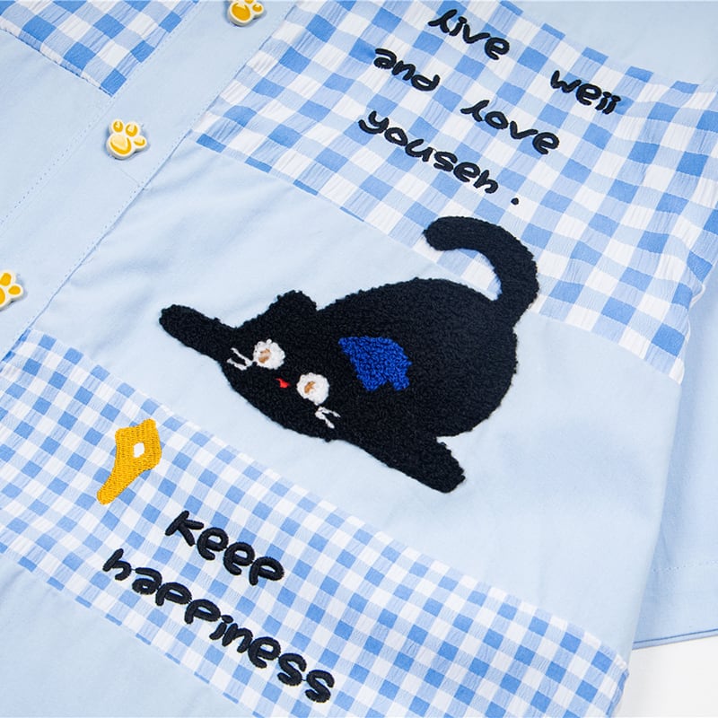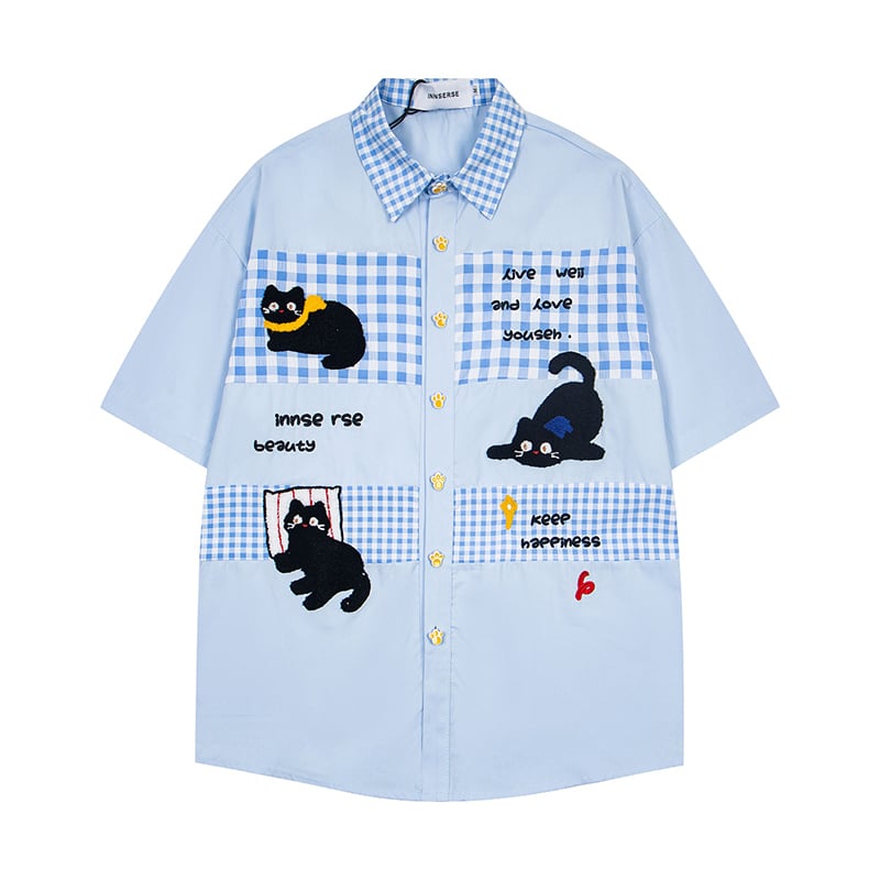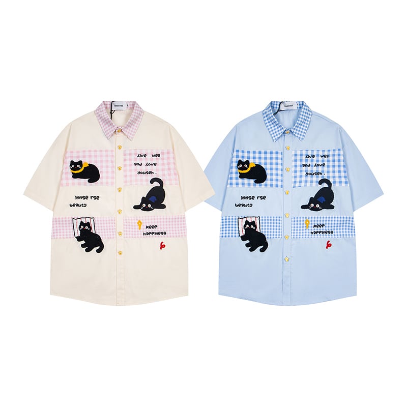 ✿黒猫がシャツに舞い降りた、夏の魔法!【YIDAOシリーズ】★シャツ★ 2color トップス ユニセックス デニム カジュアル 猫 猫柄