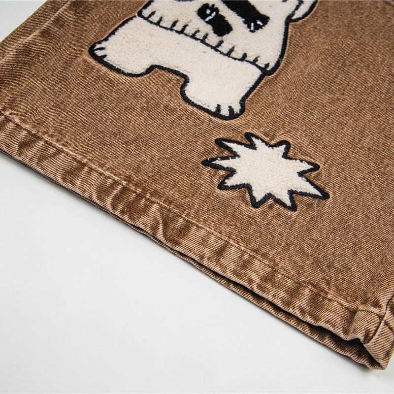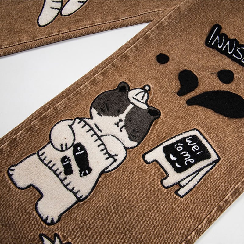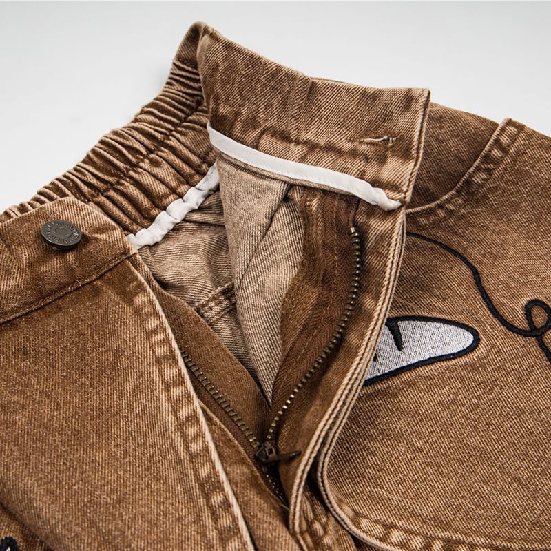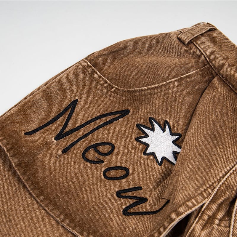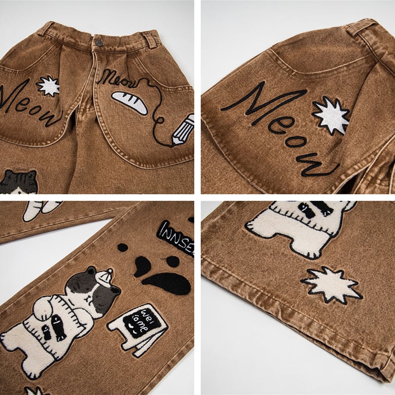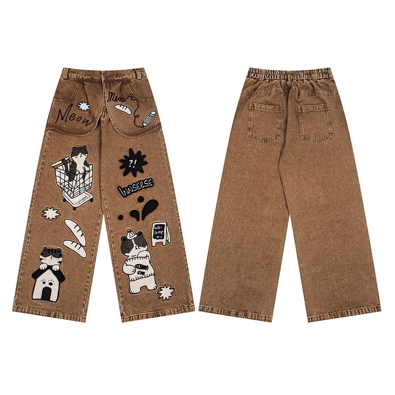 ✿猫と一緒にお買い物、デニムでお出かけ!【YIDAOシリーズ】★デニムパンツ★ ズボン ボトムス ユニセックス コットン 猫 猫柄 レトロ