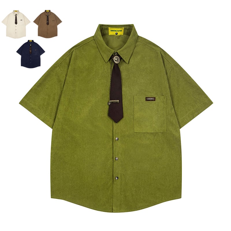 ✿重ね着にも、一枚でも、活躍する!【YIDAOシリーズ】★シャツ★ 4color ネクタイ月シャツ トップス ユニセックス 半袖