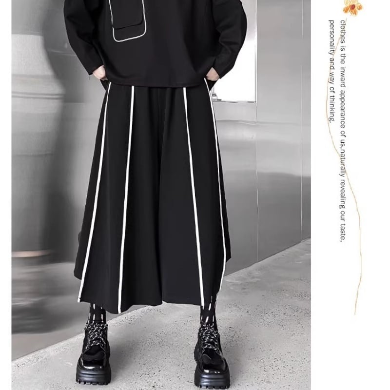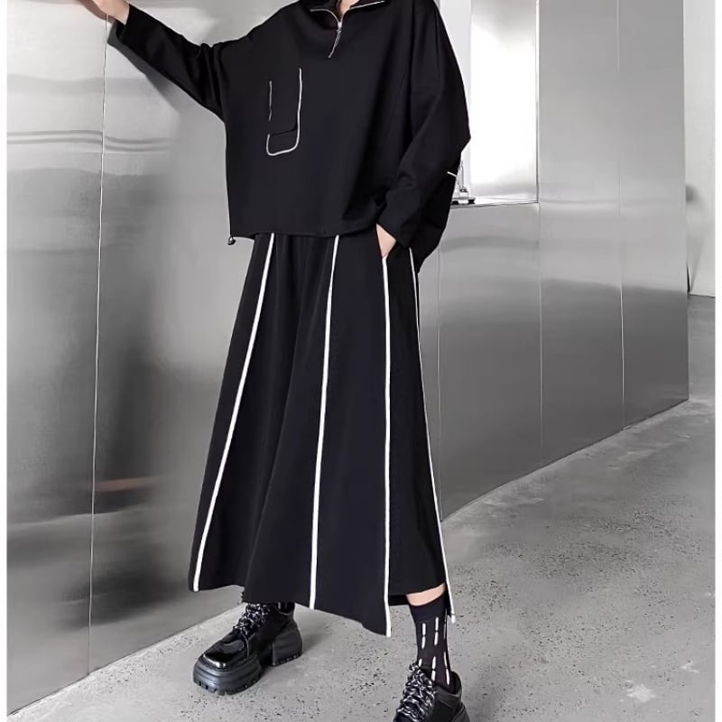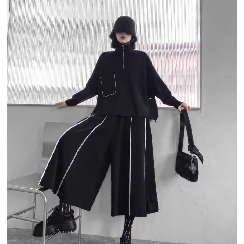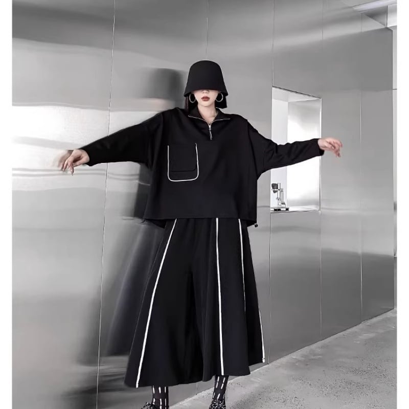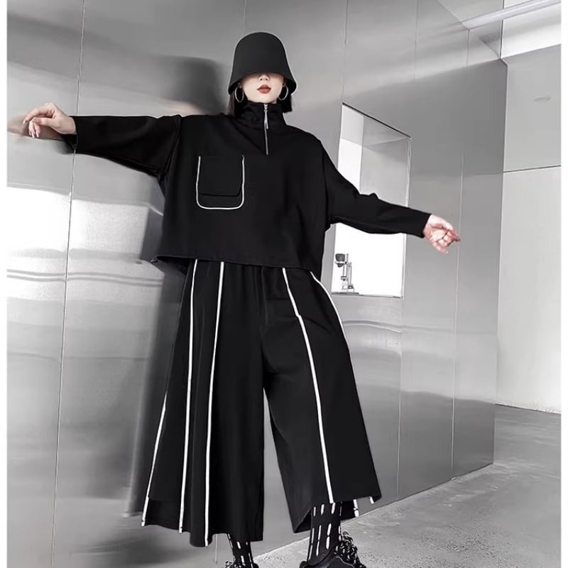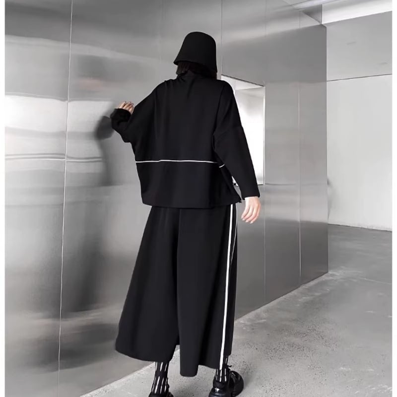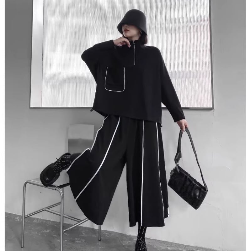 ✿ユニークデザイン ゆったりワイドパンツ!【YIDAOシリーズ】★ズボン★ ボトムス ブラック 着痩せ ファッション デザイン性有り