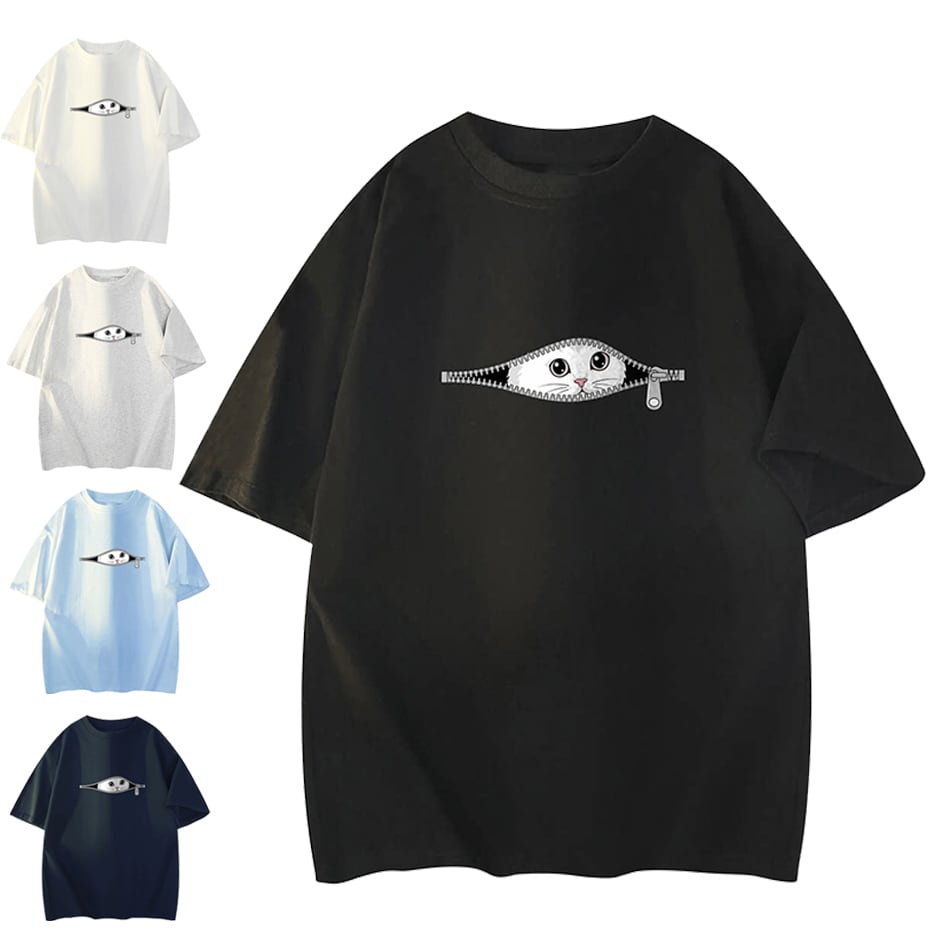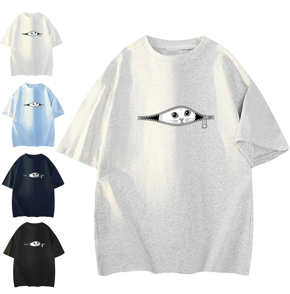 ♥隠れジッパー×ネコちゃんプリントTシャツ!【ImcTLシリーズ】★パーカー★ ユニセックス 5color トップス 猫 猫柄 メンズ レディース