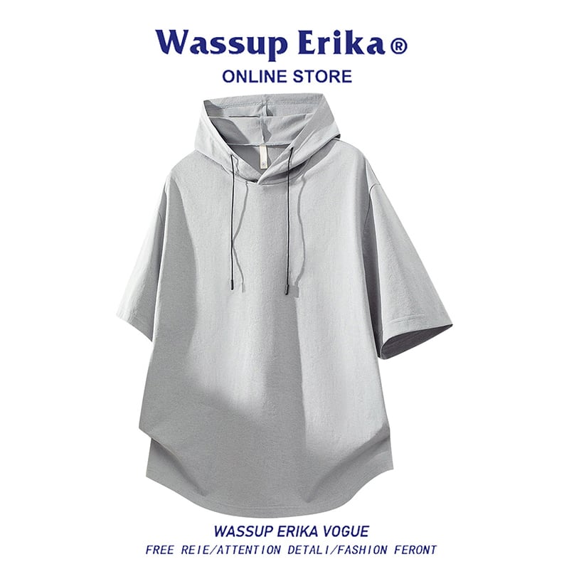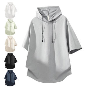 ♥カジュアルの新定番!【WSシリーズ】★パーカー★ ユニセックス 6color 半袖 無地 シンプル 黒 灰 青 緑