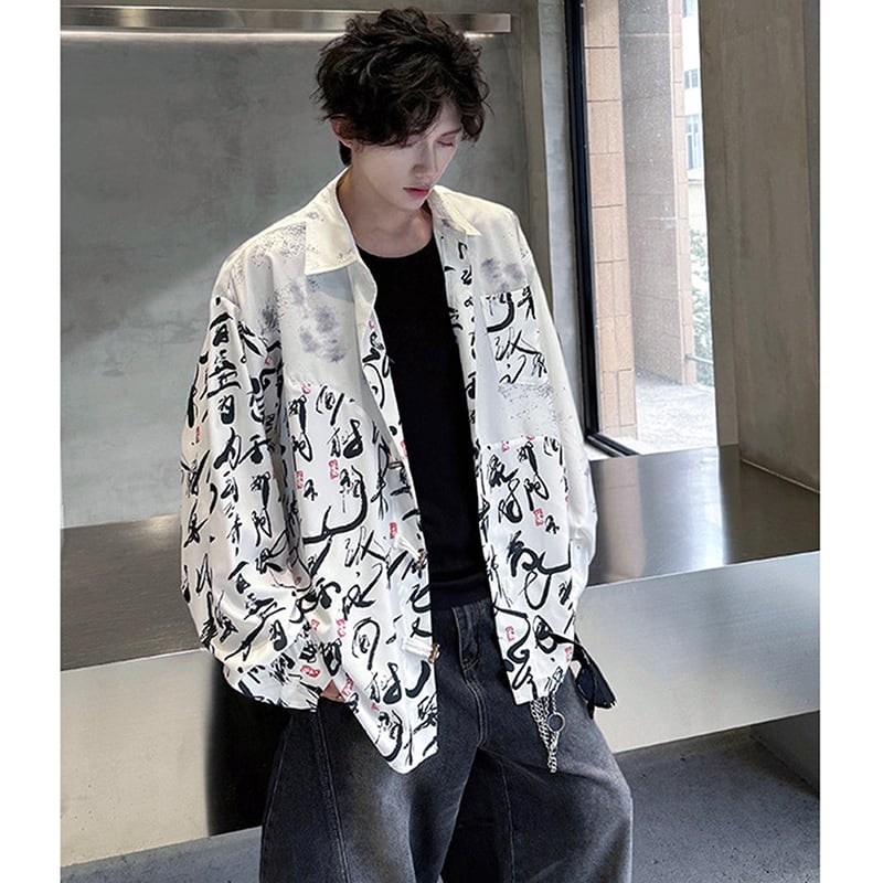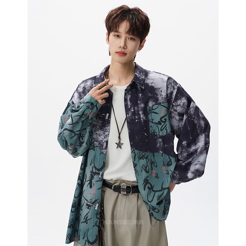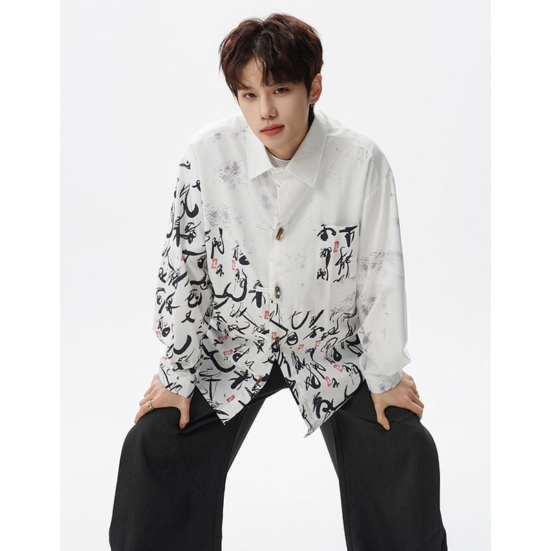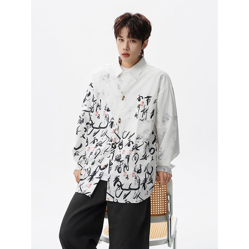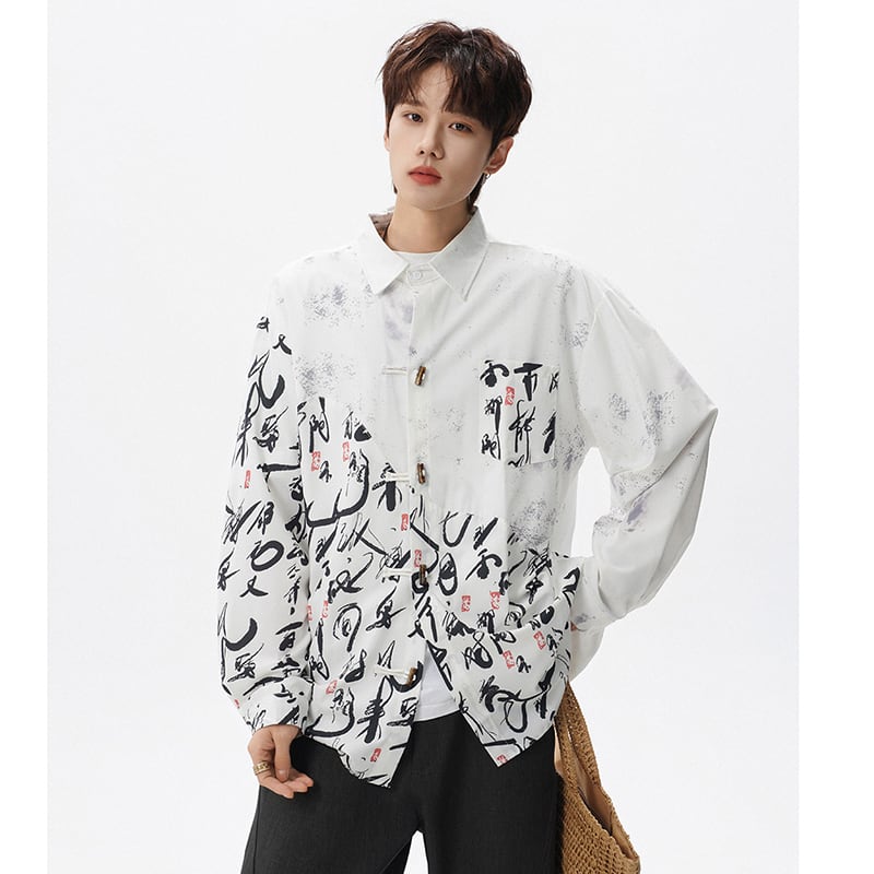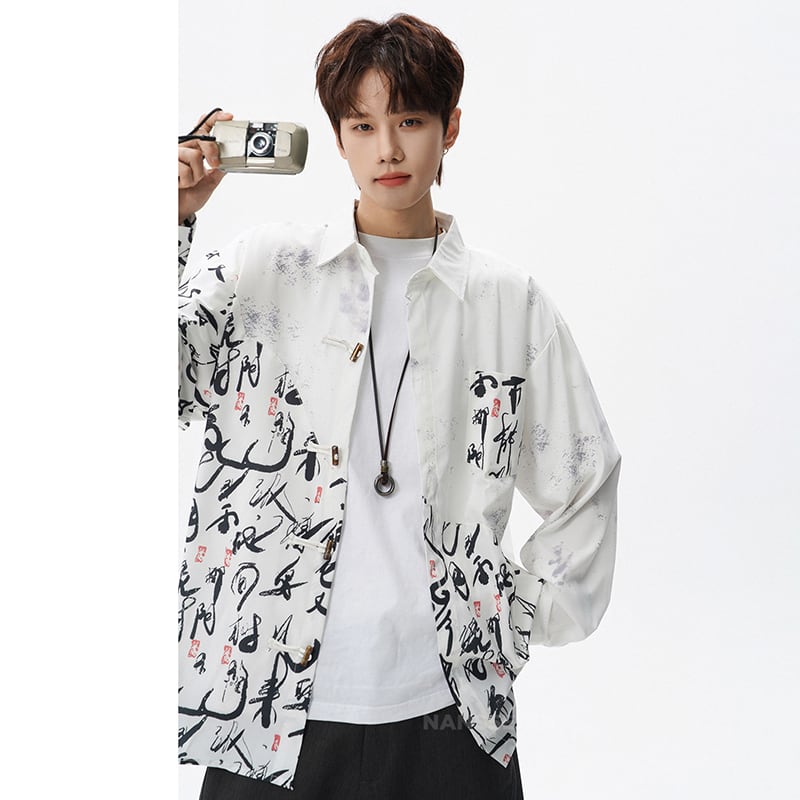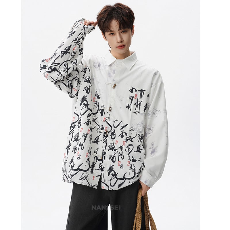 ♥文字柄個性的なシャツ!【NANSHIシリーズ】★チャイナ風トップス★ ユニセックス 2color シャツ 長袖シャツ 大きいサイズ 文字柄