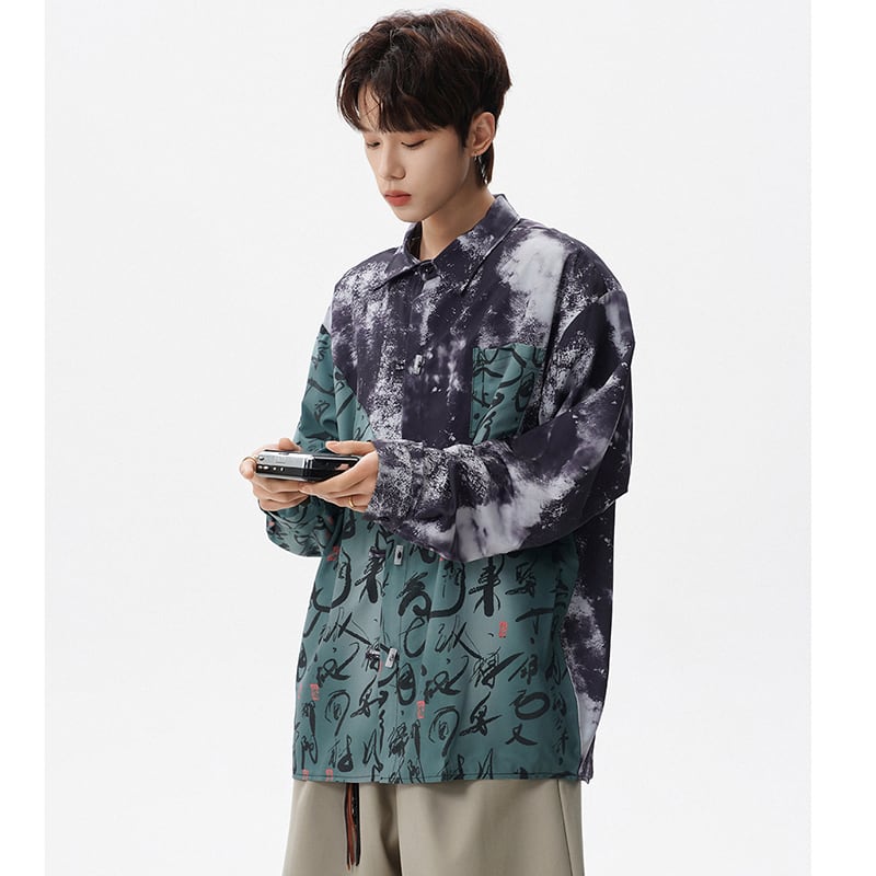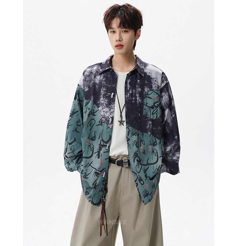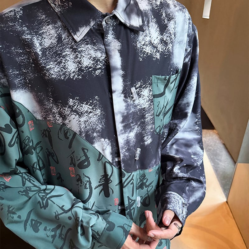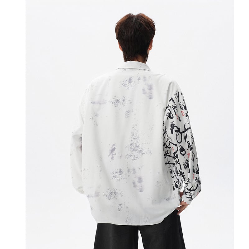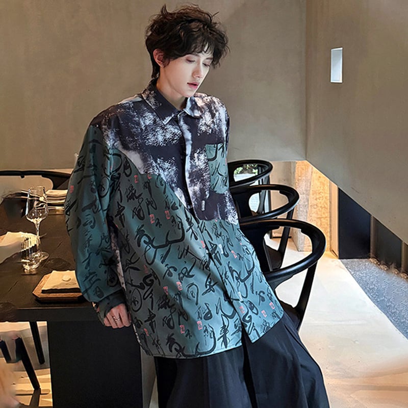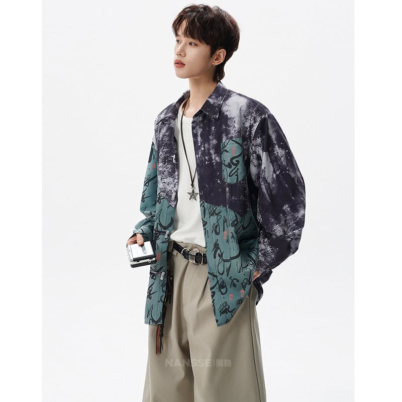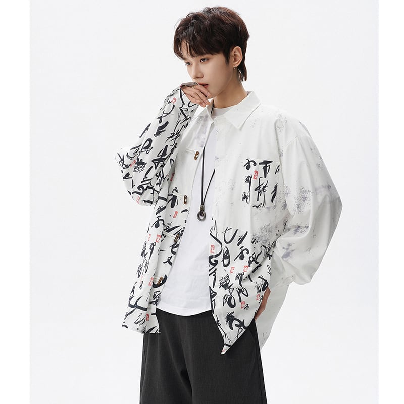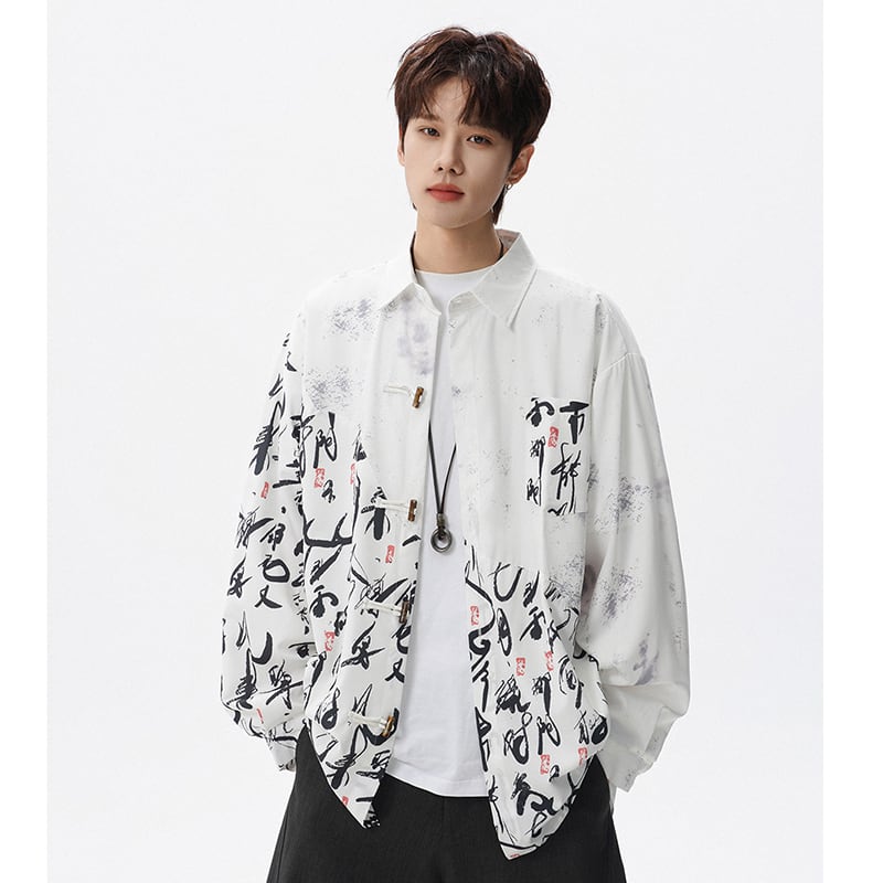 ♥文字柄個性的なシャツ!【NANSHIシリーズ】★チャイナ風トップス★ ユニセックス 2color シャツ 長袖シャツ 大きいサイズ 文字柄