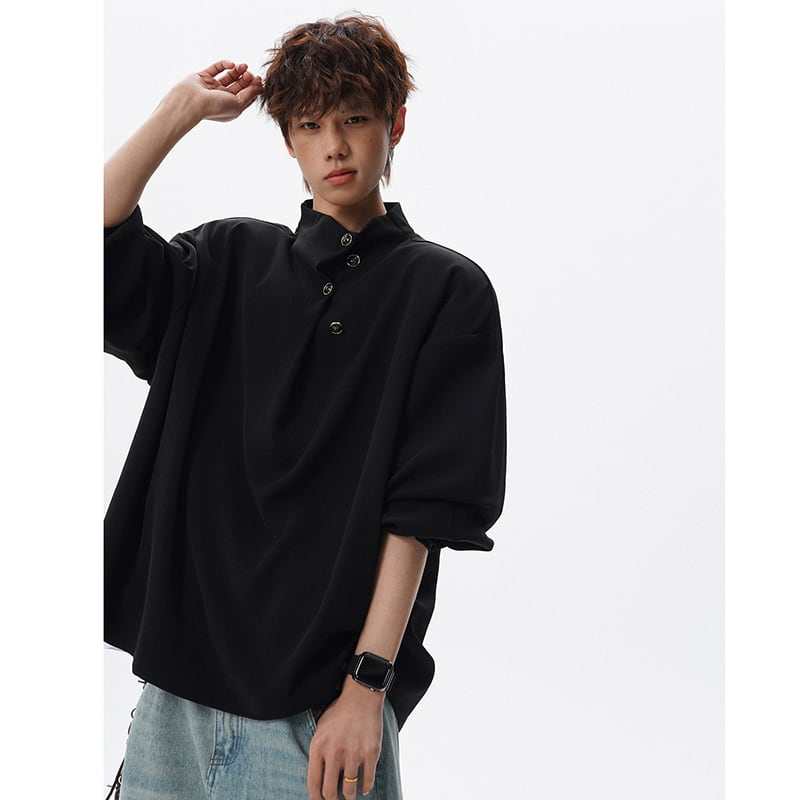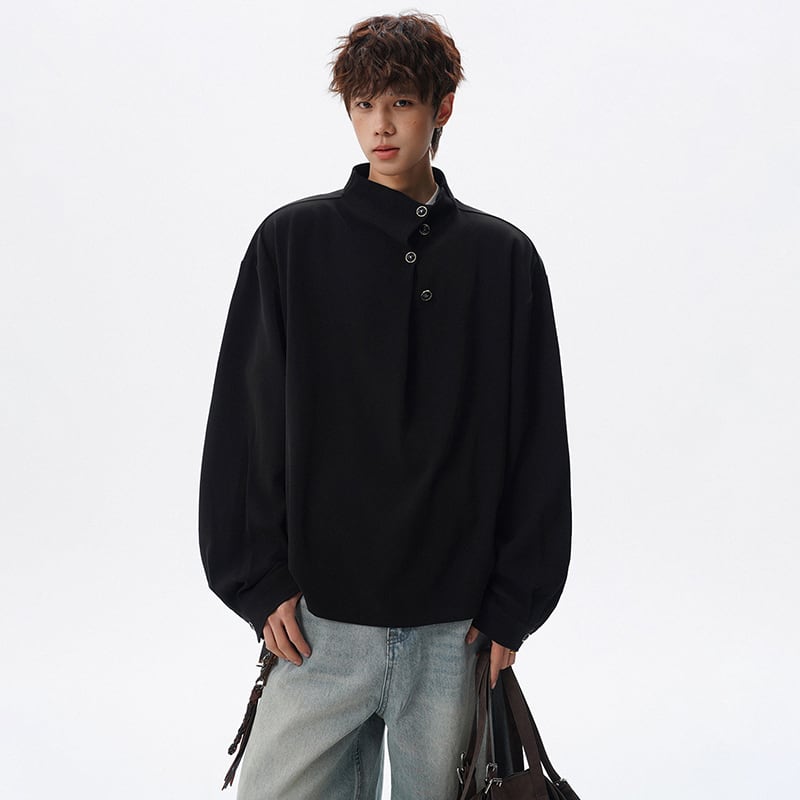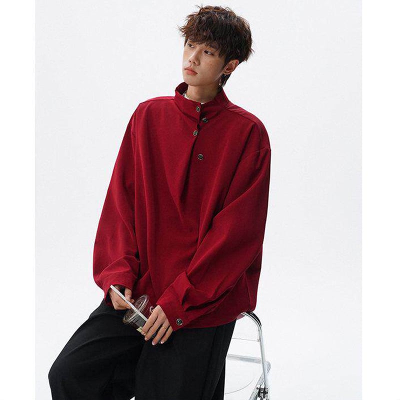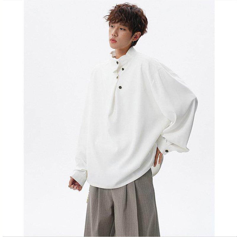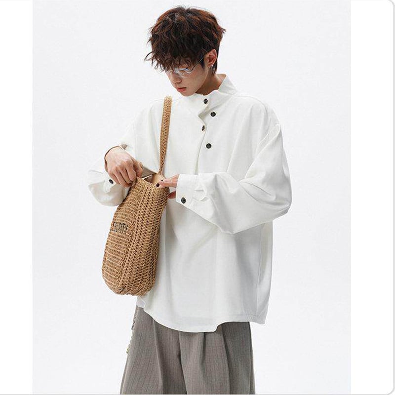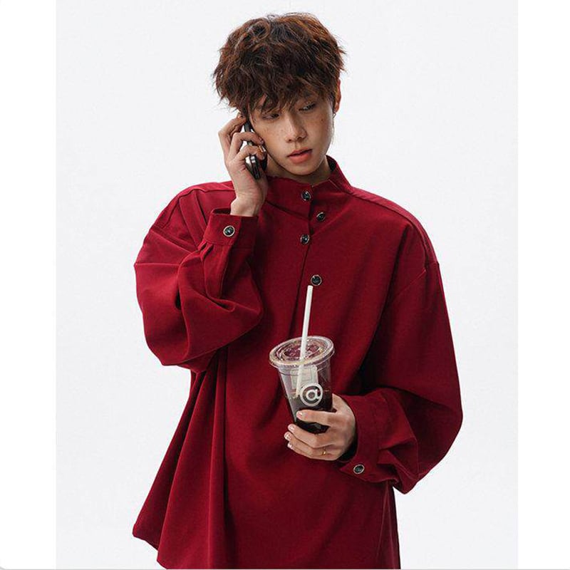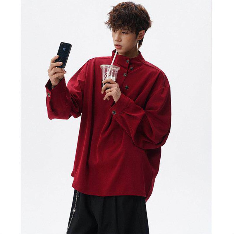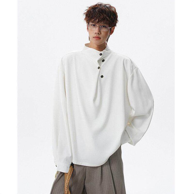 ♥不規則ボタンシャツ!【CEXUシリーズ】★チャイナ風トップス★ ユニセックス 3color シャツ 長袖シャツ 大きいサイズ