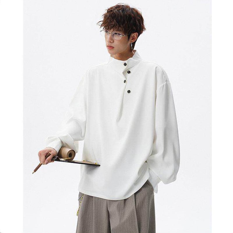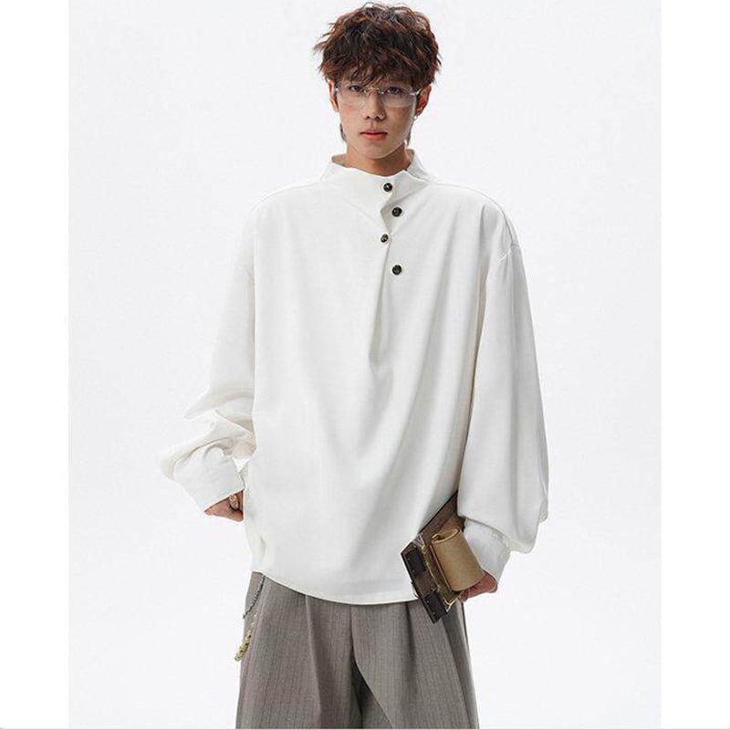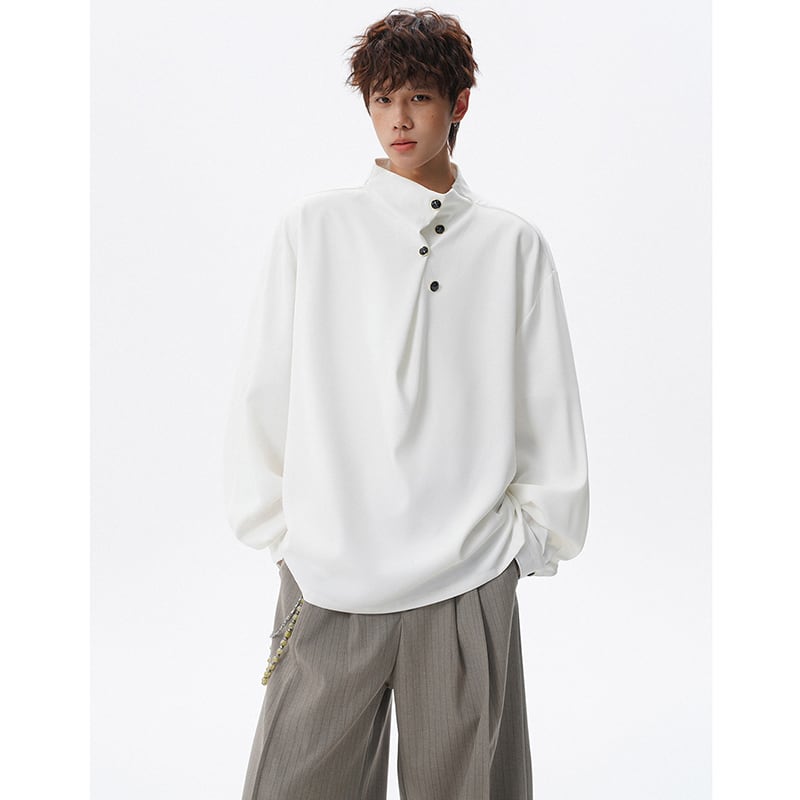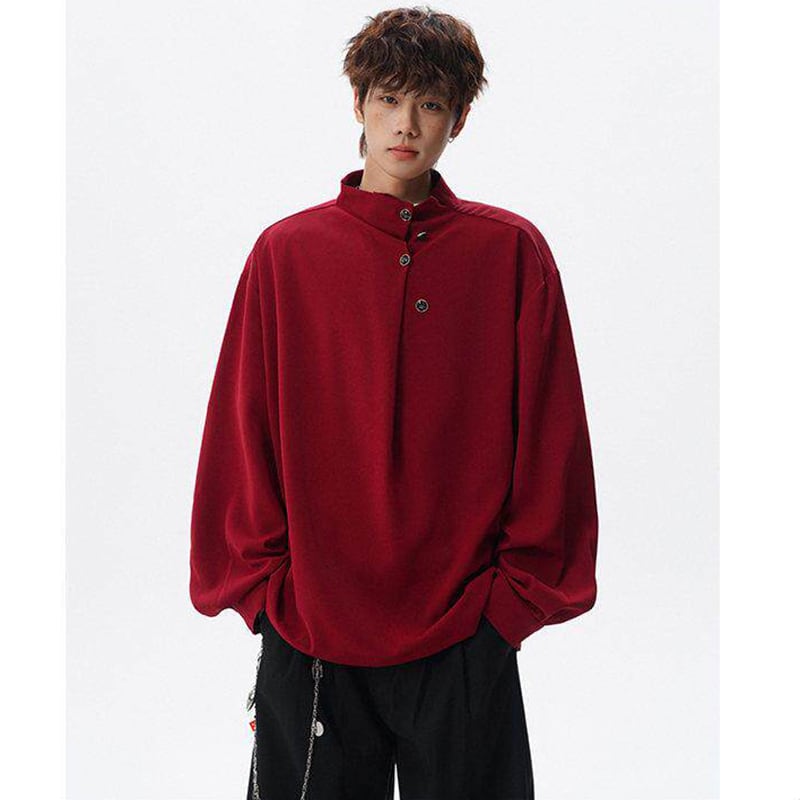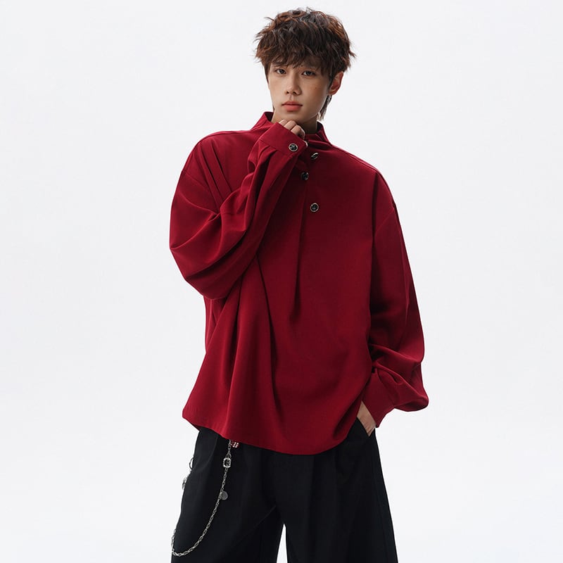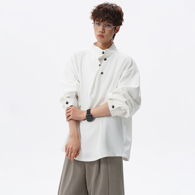 ♥不規則ボタンが、着こなしの幅を広げる!【CEXUシリーズ】★チャイナ風トップス★ ユニセックス 3color シャツ 長袖シャツ 大きいサイズ
