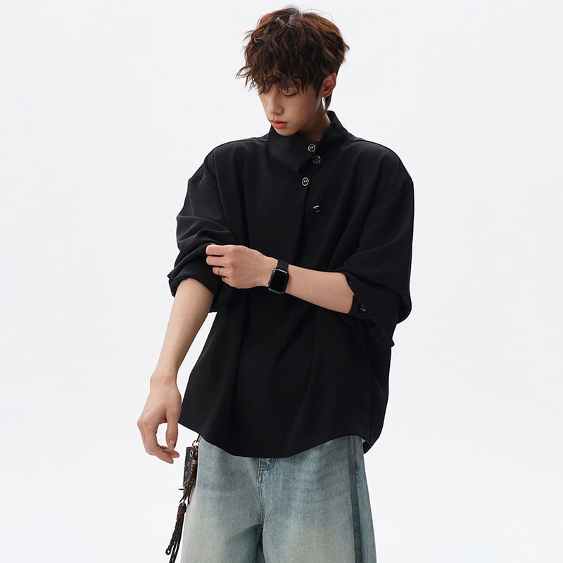 ♥計算された“不規則”!【CEXUシリーズ】★チャイナ風トップス★ ユニセックス 3color シャツ 長袖シャツ 大きいサイズ