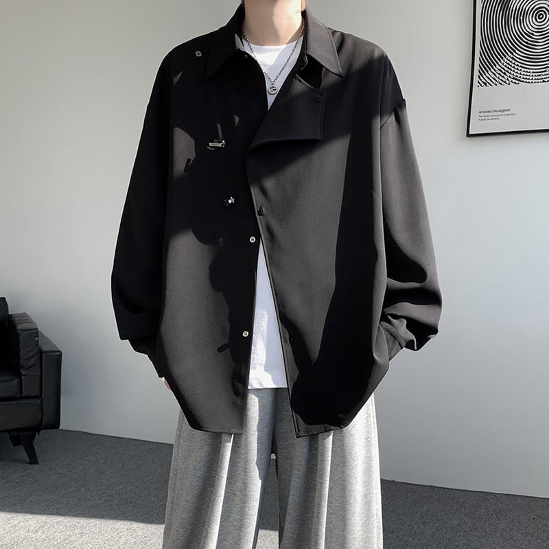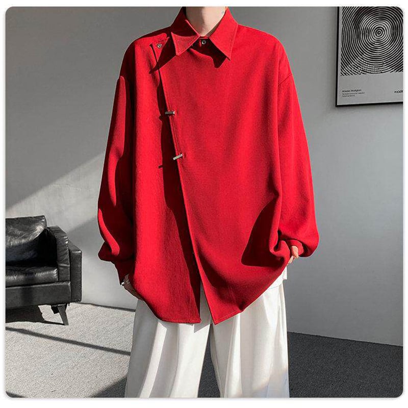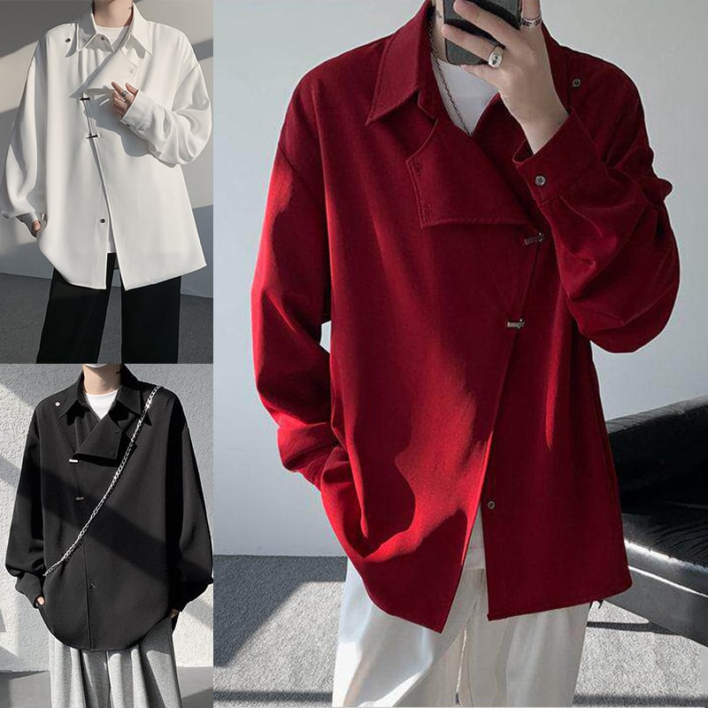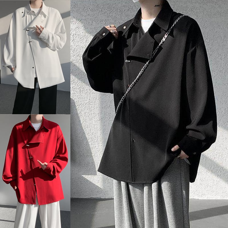 ♥金属ボタンシャツ!【V37シリーズ】★チャイナ風トップス★ 3color トップス 金属ボタン シャツ ユニセックス 大きいサイズ