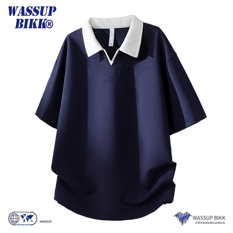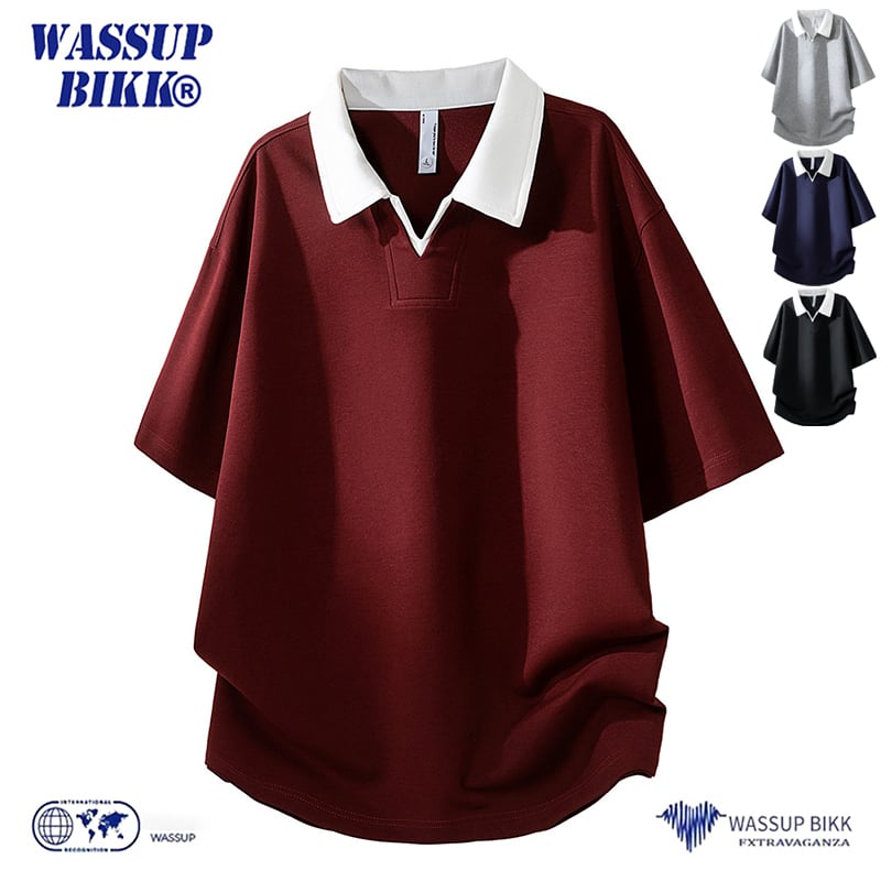 ♥Vネックの下に、広がるレイヤード!【WSシリーズ】★POLOシャツ★ ユニセックス 4color トップス メンズ 大きいサイズ 配色